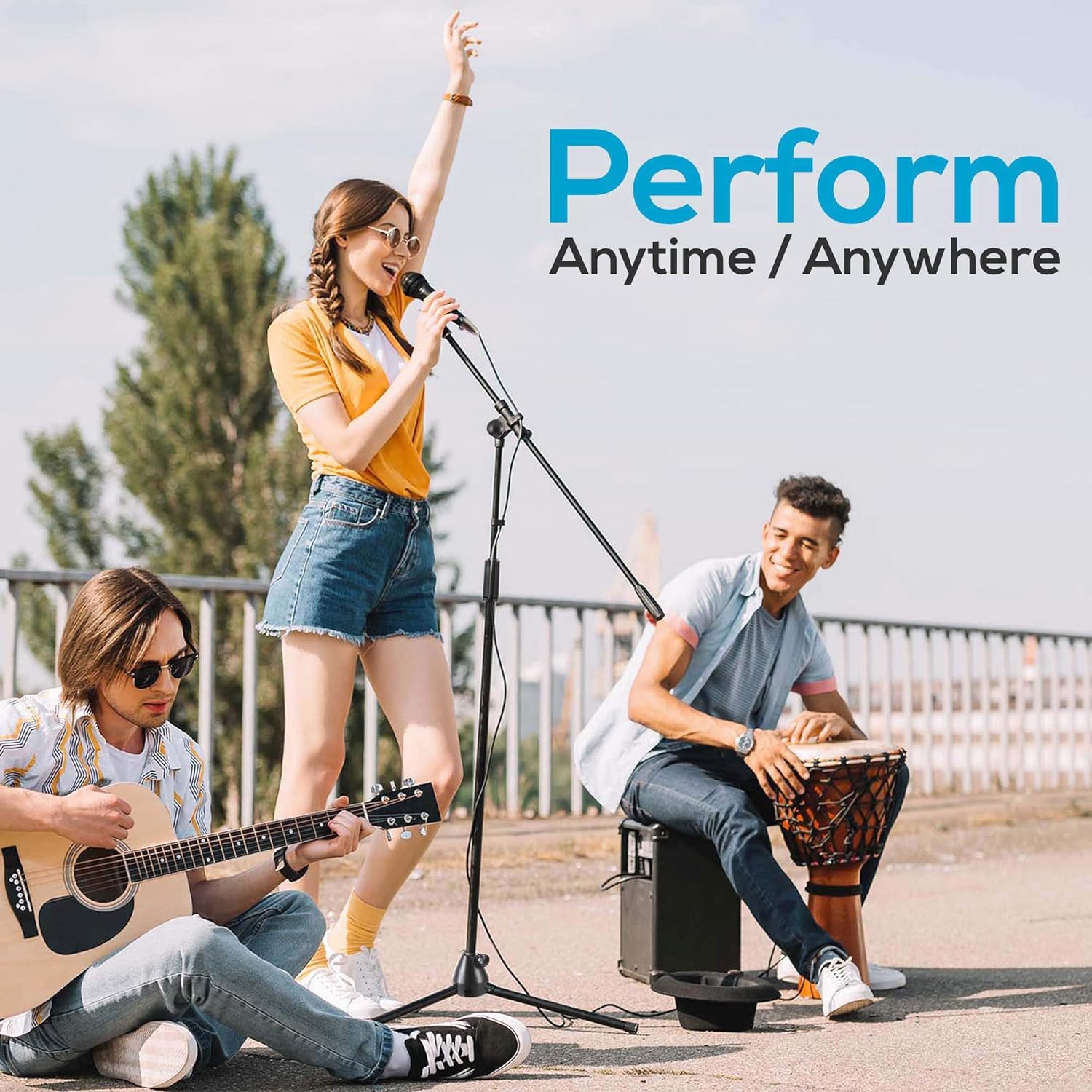 - DYNAMIC MICROPHONE - Built in acoustic pop filter with high signal output for voice clarity and has integrated for low noise circuitry. It also has power switch, rugged construction and steel mesh grill for protection of saliva from eager performers.
