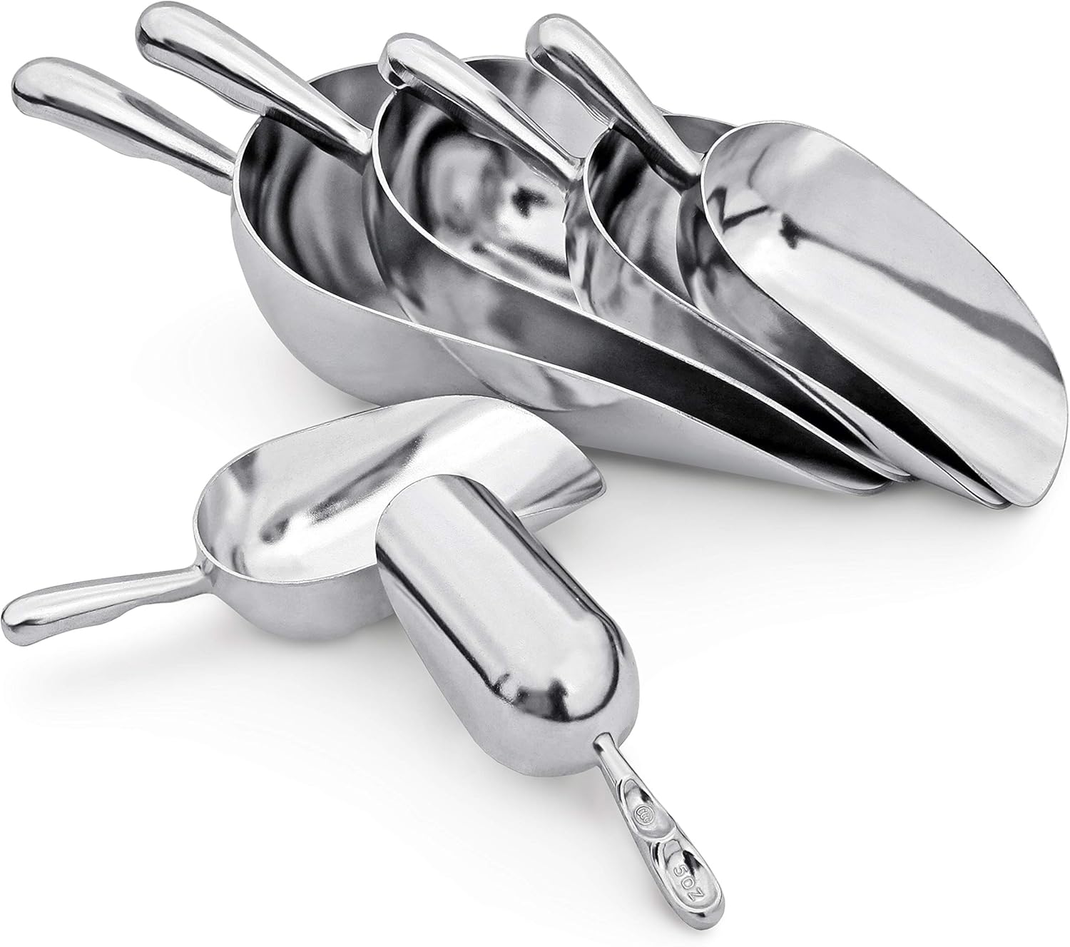 New Star Foodservice 34509 One-Piece Cast Aluminum Round Bottom Bar Ice Flour Utility Scoop, 5-Ounce, Silver (Hand Wash Only)