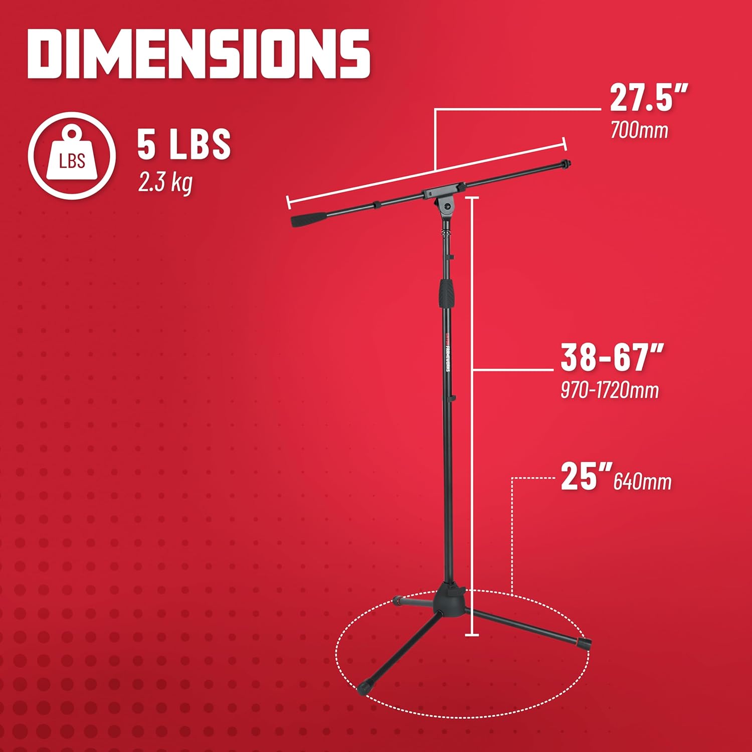 - Adjustable Boom Mic Stand: Ideal for live performances, studio recording, and broadcasting
