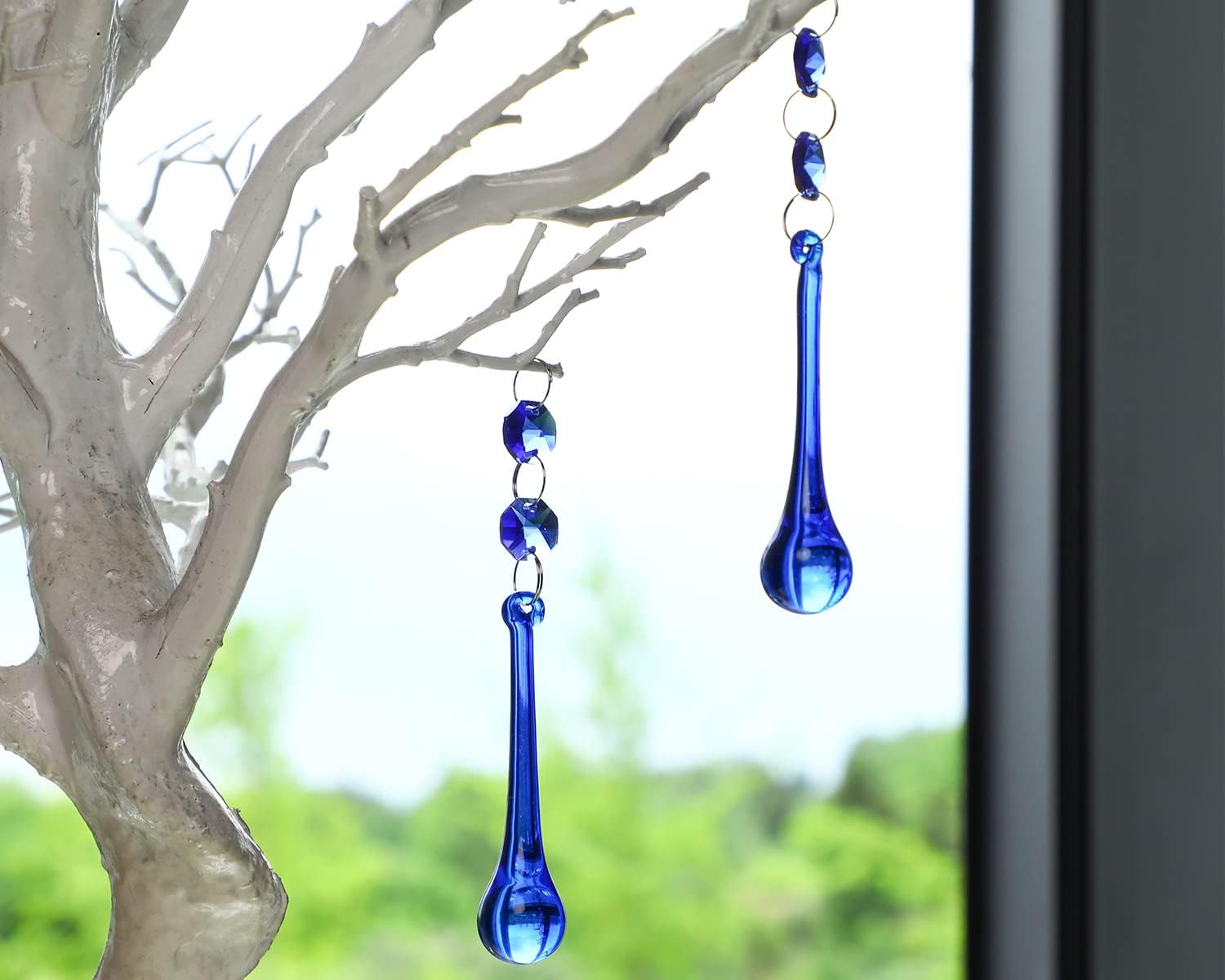 - Crystal Light Catcher: Great decoration for chandeliers, ceiling lights and candlesticks. Just hang it in a sunny place, and you can enjoy a beautiful rainbow and a good mood all day long at home. Owning such a cobalt blue crystal raindrop with octagonal beads chandelier prism pendant means having lucky blessings.