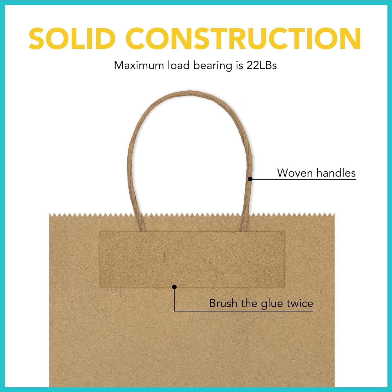 - GSSUSA Shopping Paper Bags with Handles - These brown kraft paper bags measure 16x6x12 inches and come in a pack of 50. Our bags are crafted with two layers of robust hot-melt adhesive and an additional layer of water-soluble adhesive, ensuring superior strength and carrying capacity. The bag's handle features a double-layered kraft paper construction, preventing risk of detachment. Meticulously crafted, our bags not only boast an appealing appearance but also guarantee exceptional product quali