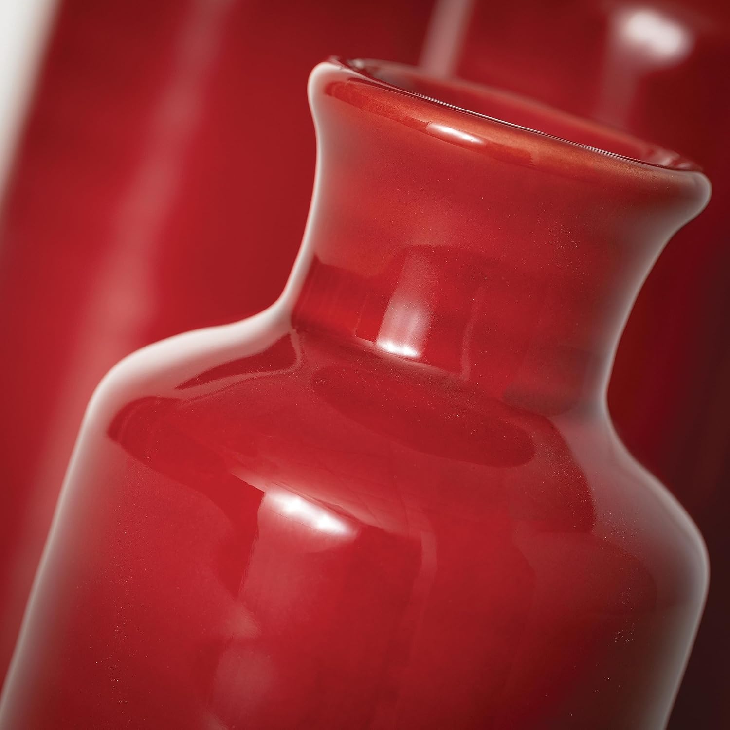 - Living room decor and accessories- (measuring 3βL x 3βW x 10βH; 3βL x 3βW x 7.5βH; 3βL x 3βW x 5βH) These red vases are the perfect home decor accent, and are ideal, for any room, style, or occasion. Whether your style is modern farmhouse, rustic, or cottagecore, or boho, this vase set will keep your home looking up to date year after year. Add in your favorite faux flowers for an extra pop of color.