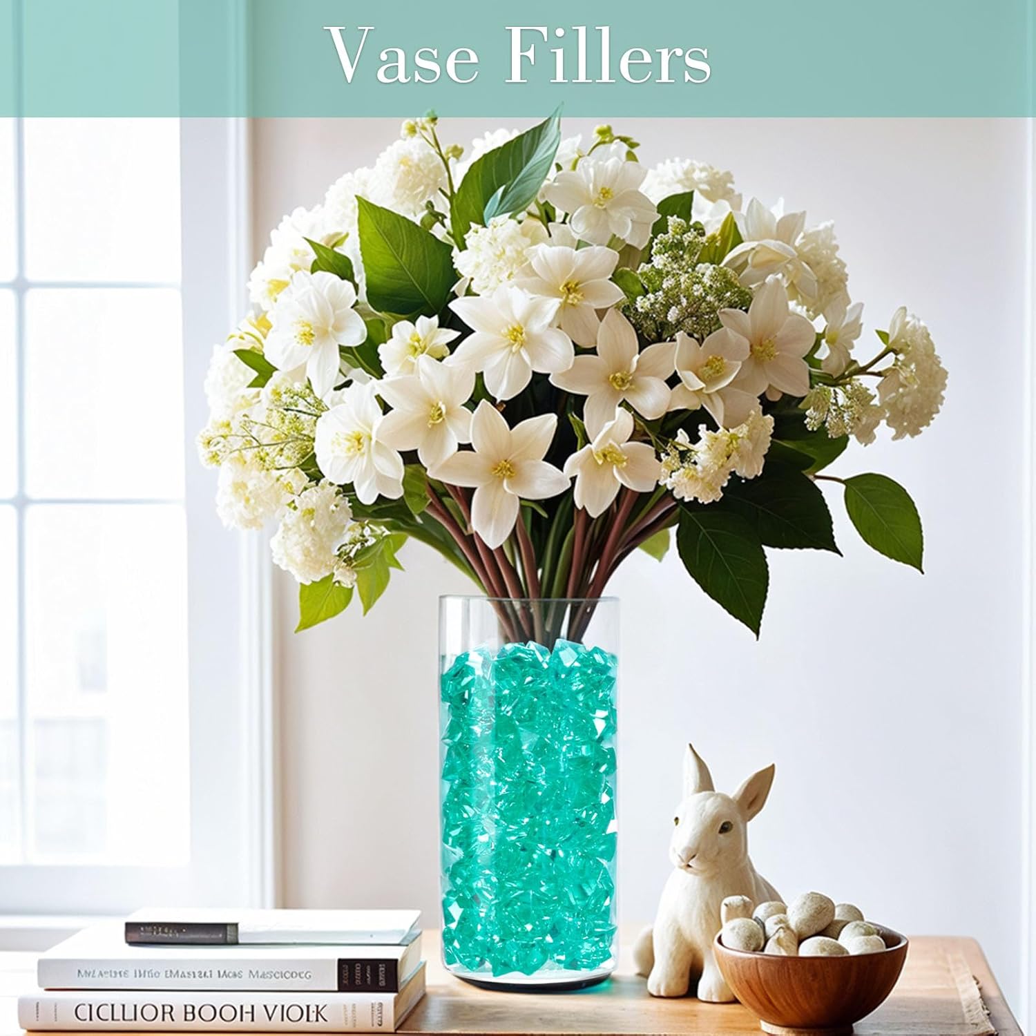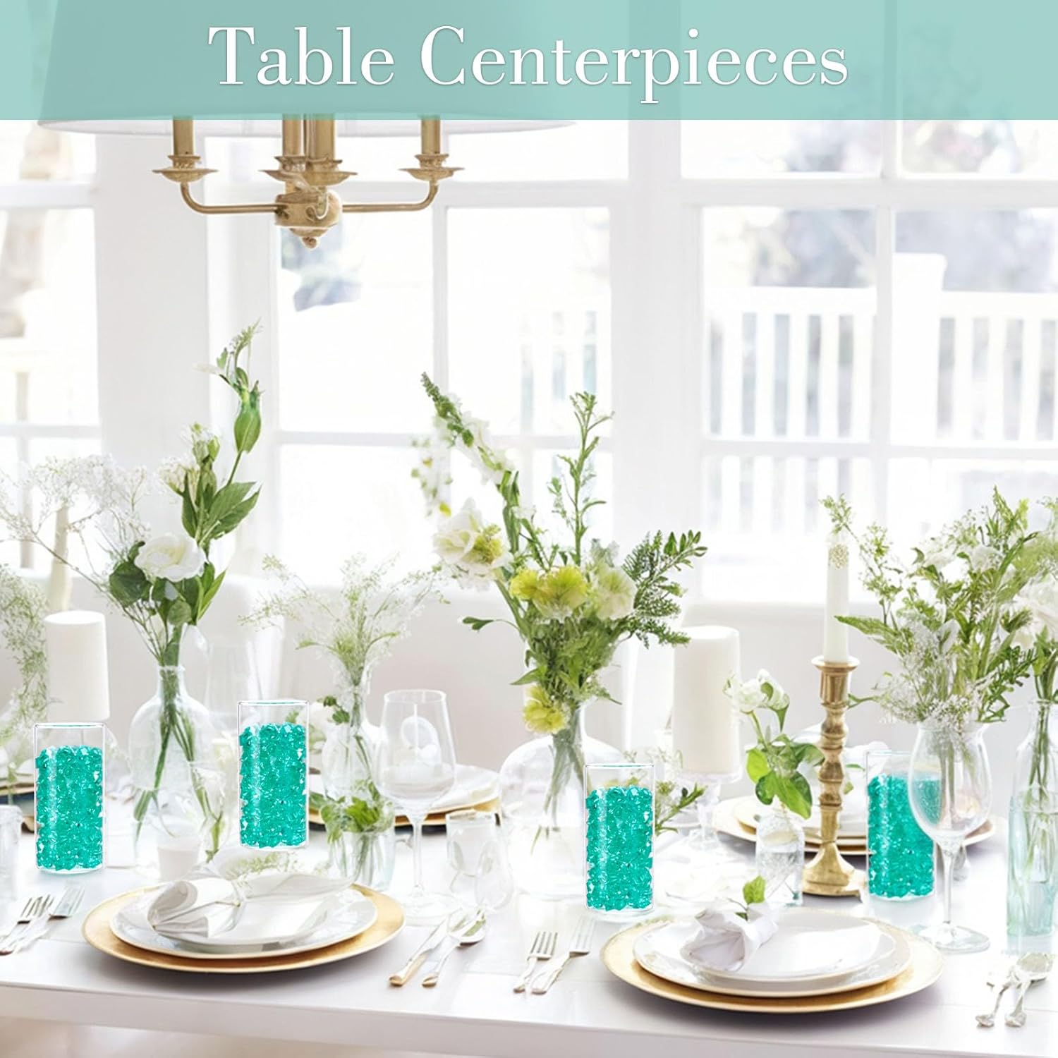 DomeStar Teal Fake Ice Rocks, 150PCS Acrylic Gems Crystals Plastic Shamrock Diamonds Centerpiece for Vase Fillers DIY Craft Wedding Party Table Scatter Decorations