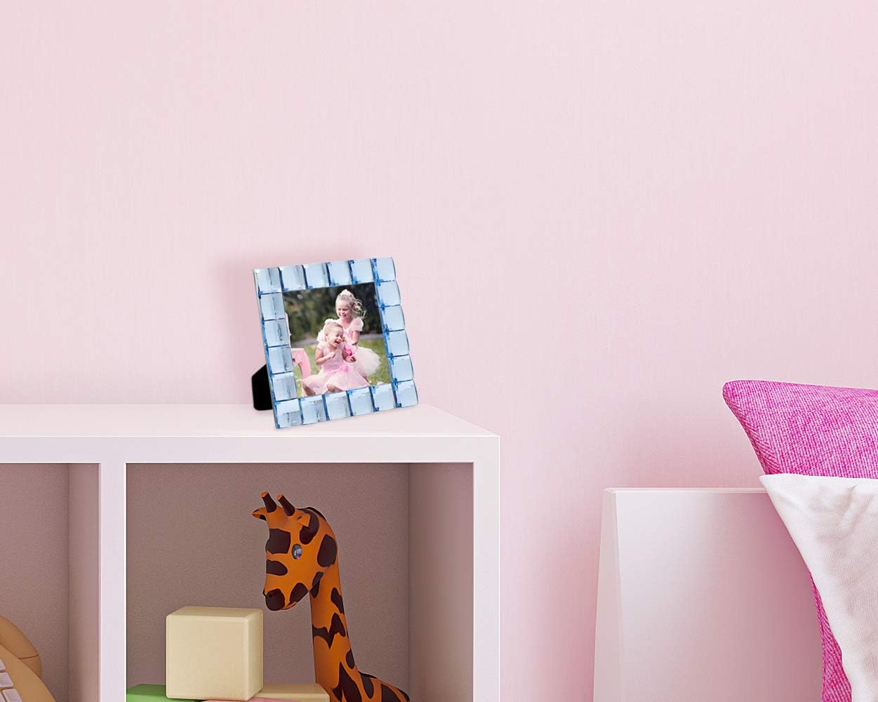 Isaac Jacobs Decorative Sparkling Light Blue Jewel Picture Frame, Photo Display & Home Décor (4x4, Light Blue)