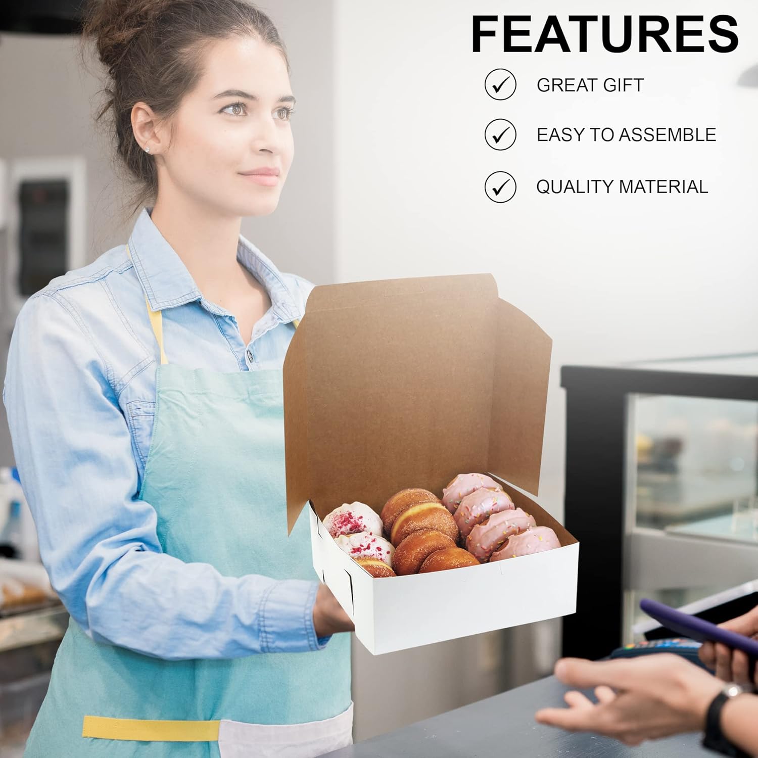 - Quality material pastry box: These baking boxes are made of durable, high-quality paperboard which ensures the dessert box will not break or tear while transporting or selling any of your baked goods. These cookie boxes are also perfect for use as cookie boxes for gift giving. Each treat box is sturdy yet lightweight and easy to travel with.