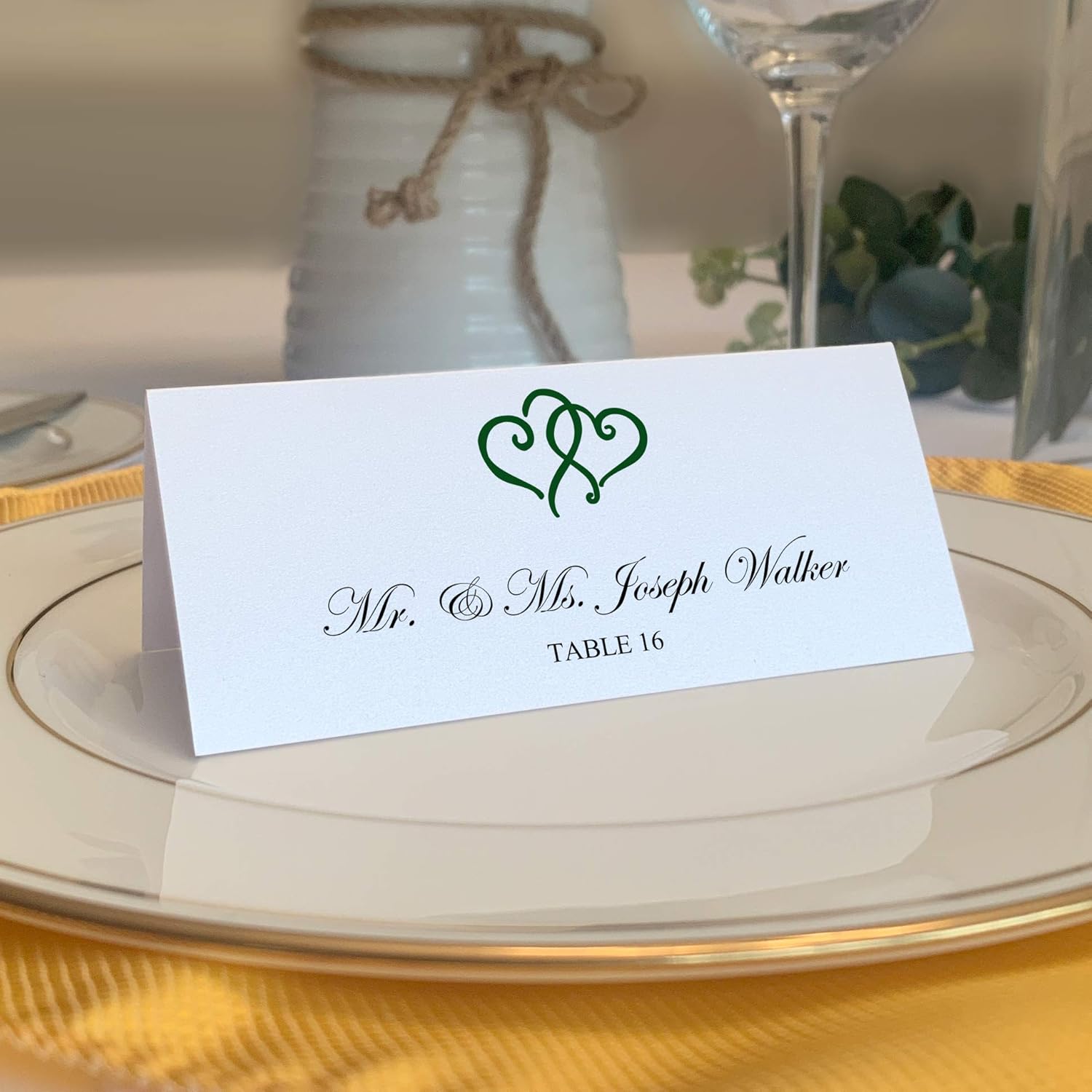 Linked Hearts Printable Place Cards, Hunter Green (Choose Color), Set of 150 (25 Sheets), Laser & Inkjet Printers - Wedding, Party, Dinner, and Special Events - Made in the USA