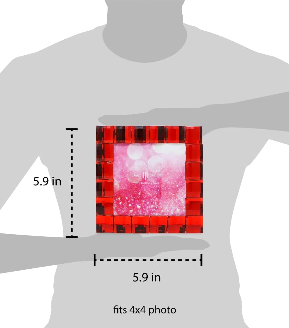 Isaac Jacobs Decorative Sparkling Red Jewel Picture Frame, Photo Display & Home Décor (4x4, Red)