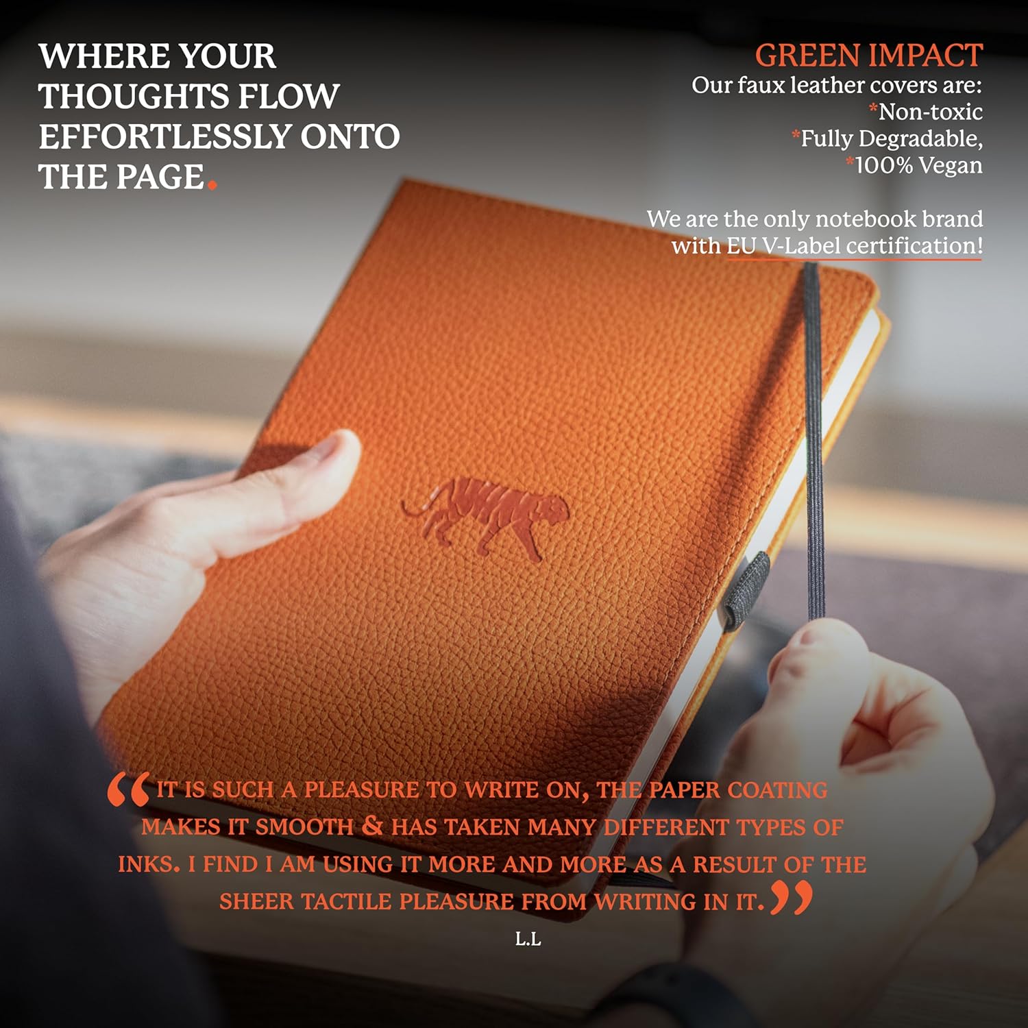 - HIGHEST-QUALITY WRITING PAPER: Dingbats Orange Tiger Medium A5 Notebook Journal has 192 pages-96 sheets of no bleed, smooth writing, Cream 100gsm, acid-free fountain-pen friendly, perforated plain paper in a flat lay design