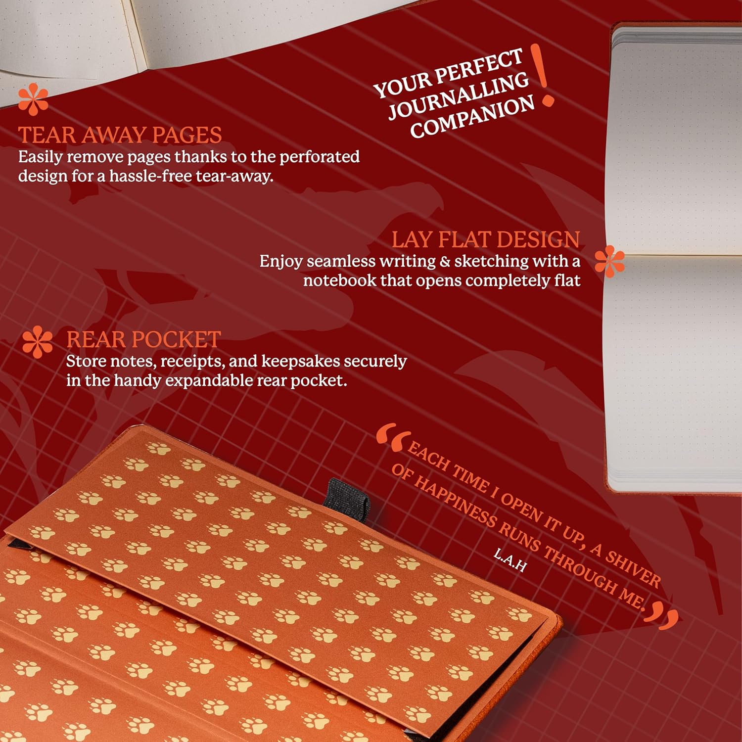 - A5 NOTEBOOK WITH LOTS O' FEATURES: Dingbats notebooks ooze quality - this hardcover bound leather notebook is crafted with PU vegan leather, micro-perforated cream 100gsm pages, an elastic closure and pen holder. It's complete with animal footprint end sheets, and an inner pocket for a little added detail - the perfect gifts for men and women, these travel essentials are a gift that keep on giving