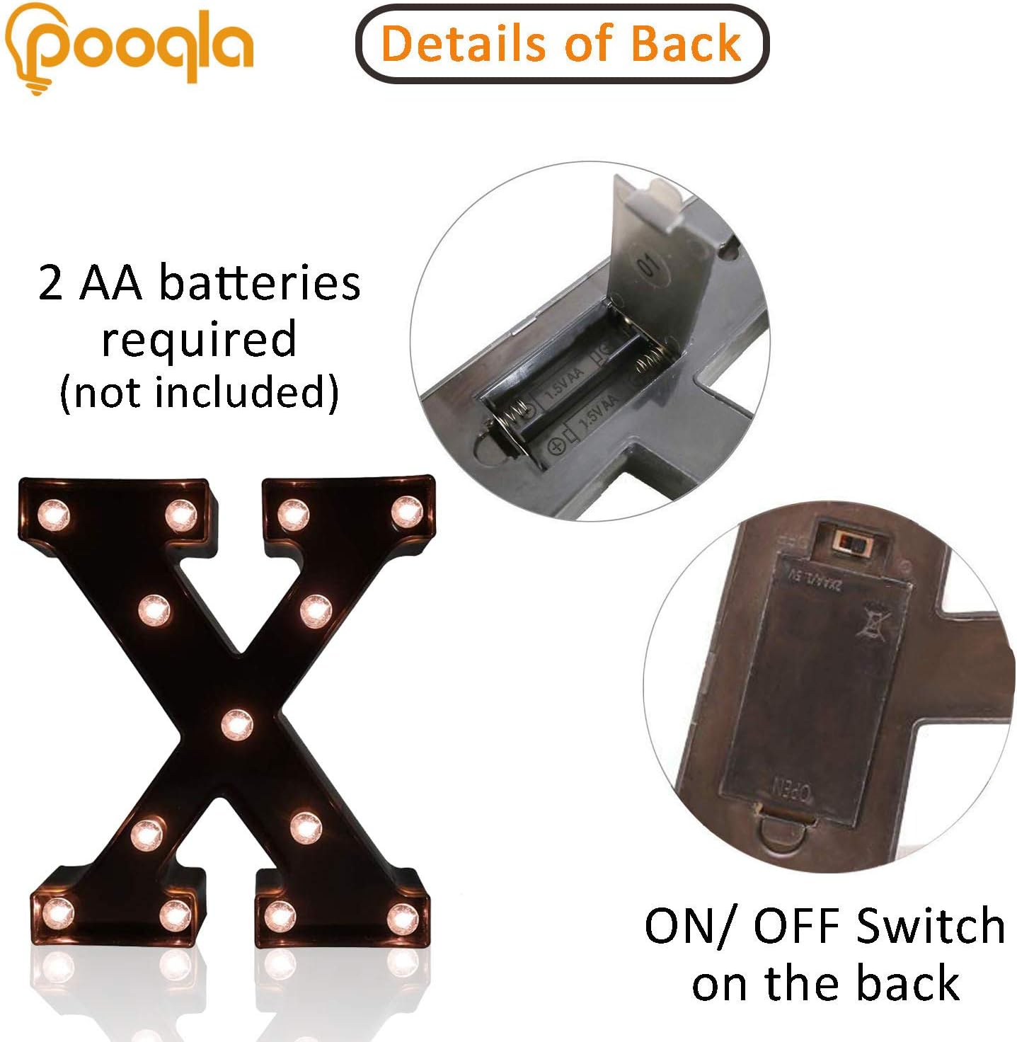 Decorative LED Illuminated Letter Marquee Sign - Alphabet Marquee Letters with Lights For Wedding Birthday Party Christmas Night Light Lamp Home Bar Decoration X, Black