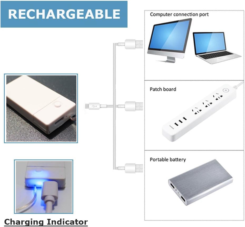 - RECHARGEABLE: Built-in rechargeable battery and come with USB cables, you can recharge the string lights easily when the lights get dim. No battery replacement.