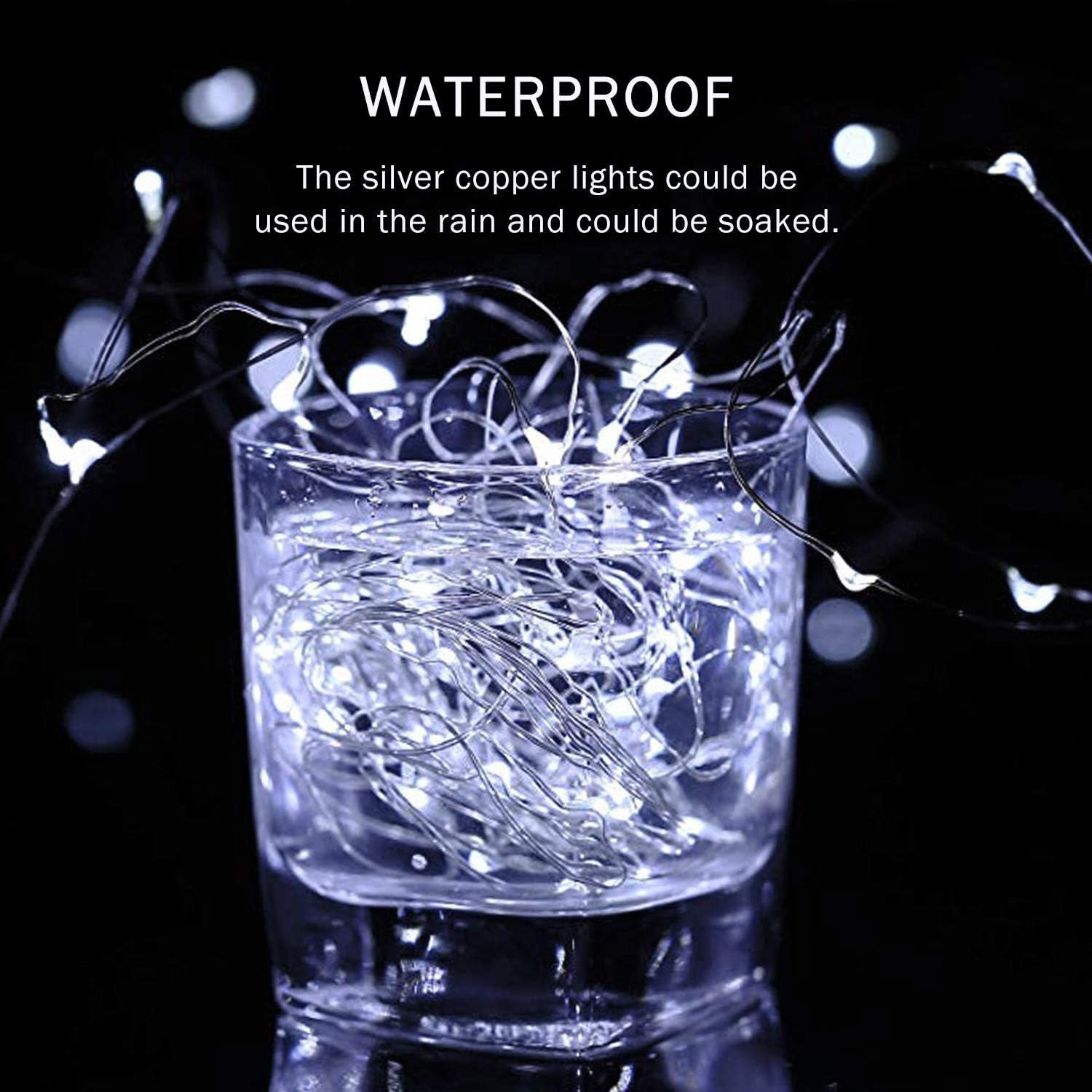 - WATERPROOF: The LED string lights is waterproof (Please kindly note that battery box is not waterproof, it should be covered in rainy days). Good for DIY wedding party table Christmas, anywhere indoor or outdoor usage of lighting decorations