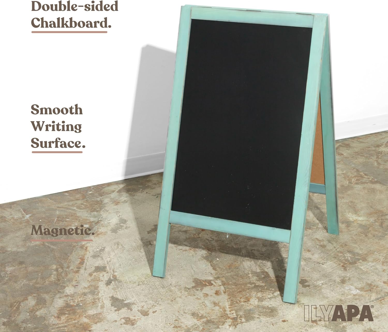 Ilyapa Wooden A-Frame Sign with Eraser & Chalk - 40 x 20 in Magnetic Sidewalk Chalkboard – Turquoise Menu Display for Restaurant, Business Or Wedding