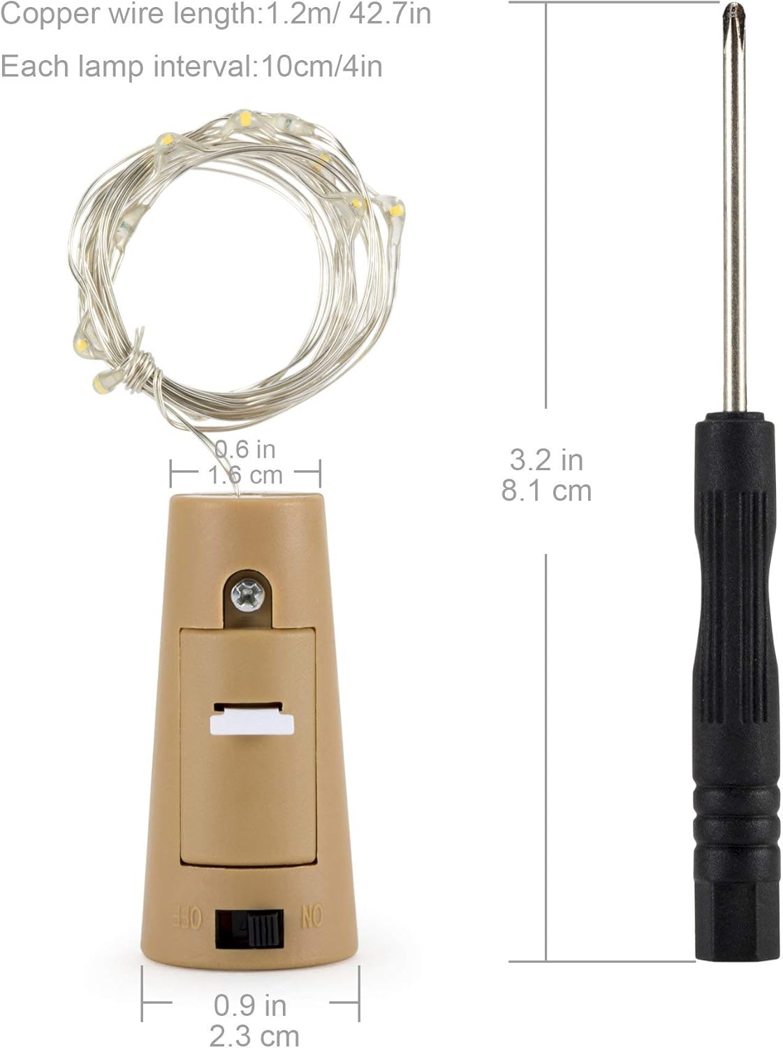 - Cork design: The diameter of the cork is from 1.6 cm/ 0.6 in to 2.3 cm/ 0.9 in, which is the universal size for most wine bottles, fit for most glass, wine, beer, soda, whiskey bottles and any other kind of bottles. Toggle the buttorn on the cork to turn the lights on/off, easy to operate