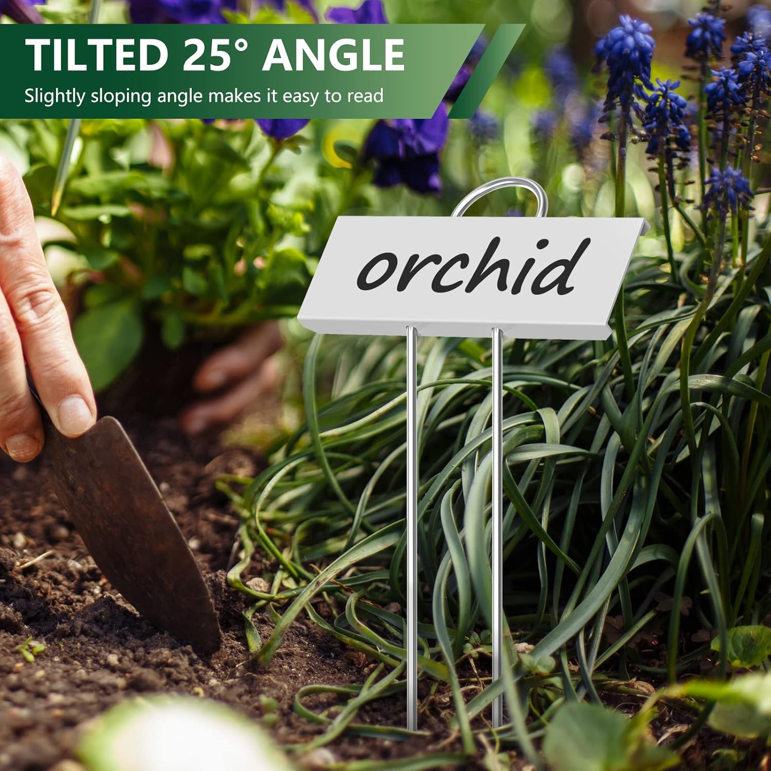 - ♥10.6” Garden Markers: Total height 10.6”, Label Area 3.5” x 1.2”(slightly sloping) the angle makes it easy to read when you're standing up