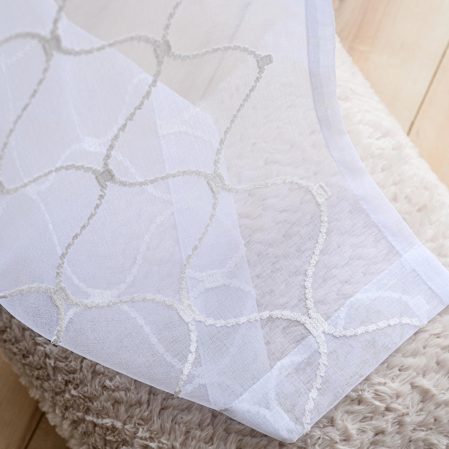 Embroidered Wave Diamond Sheer Curtains White 95 Inches, Window Treatments Rod Pocket Drapes for Living room, Bedroom, Semi Voile Curtain Panels for Yard, Patio, Villa, Parlor, Set of 2, 52"x95".