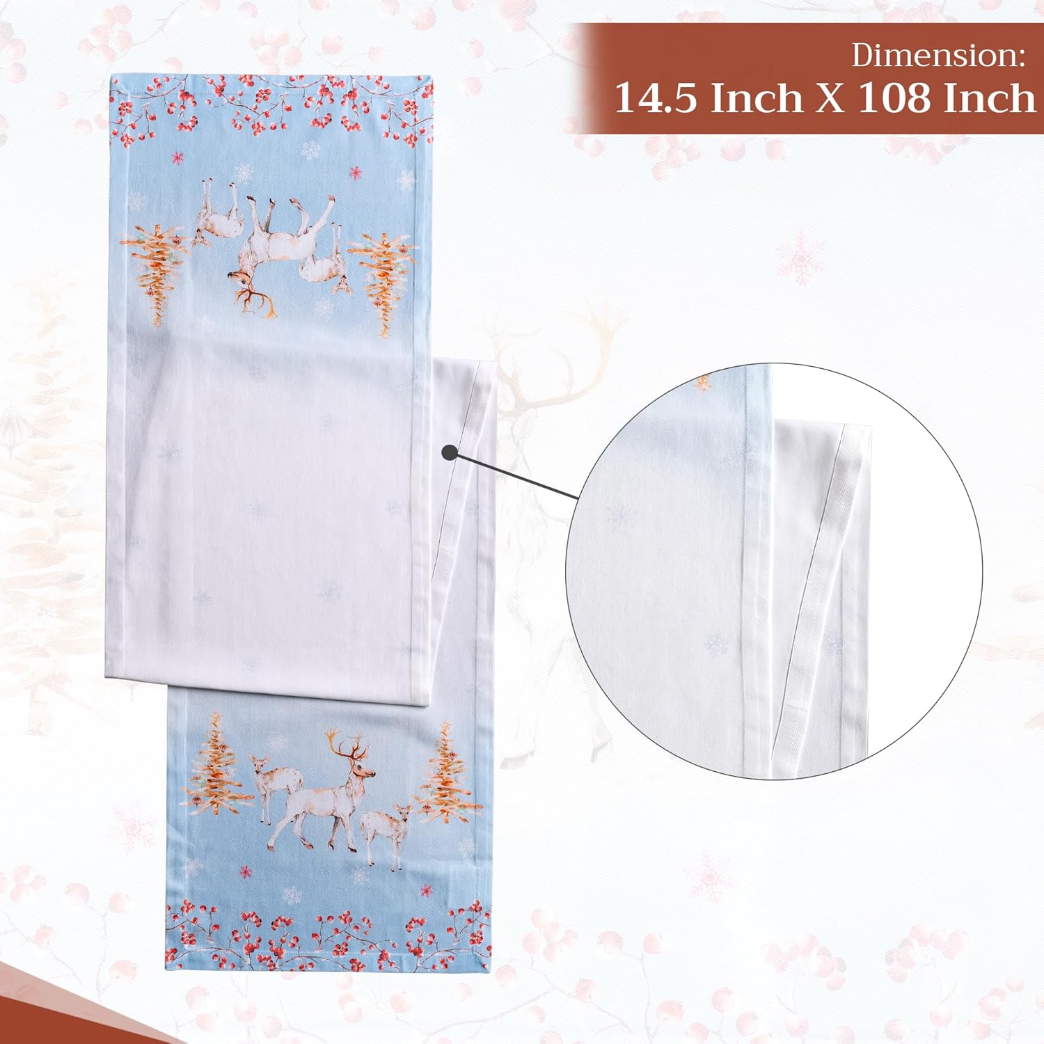 - Package Includes: 1 table runner measuring 14.5" x 108", made from 100% cotton. Ideal for banquet tables, dining tables, or adding a spring, Thanksgiving, or Christmas touch to your party decor. This 108-inch table runner brings unique charm to both casual and festive settings