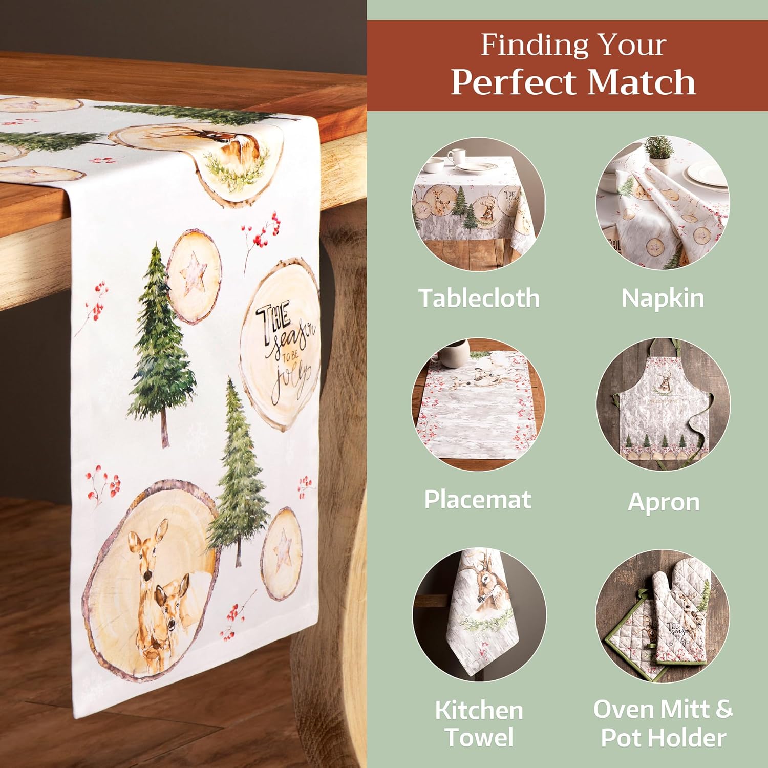 Maison d' Hermine Table Runner 100% Cotton Single Layer Table Runners 72 inches Long for Thanksgiving Christmas Decorations Home Kitchen Dining Party Wedding (Mountain Life, 14.5" x 72")