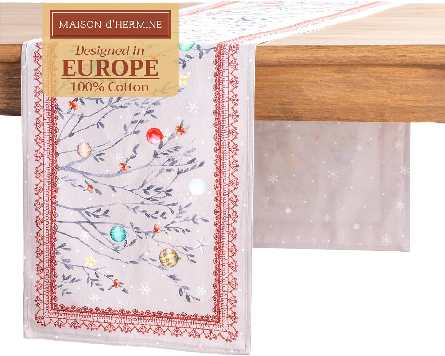 Maison d' Hermine Table Runner 100% Cotton Double Layer Table Runners 108 inches Long for Thanksgiving Christmas Decorations Home Kitchen Dining Party Wedding (Fairy Christmas, 14.5" x 108")