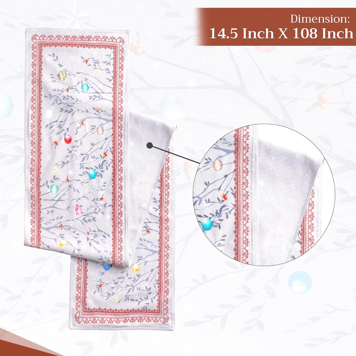 - Package Includes: 1 table runner measuring 14.5" x 108", made from 100% cotton. Ideal for banquet tables, dining tables, or adding a spring, Thanksgiving, or Christmas touch to your party decor. This 108-inch table runner brings unique charm to both casual and festive settings