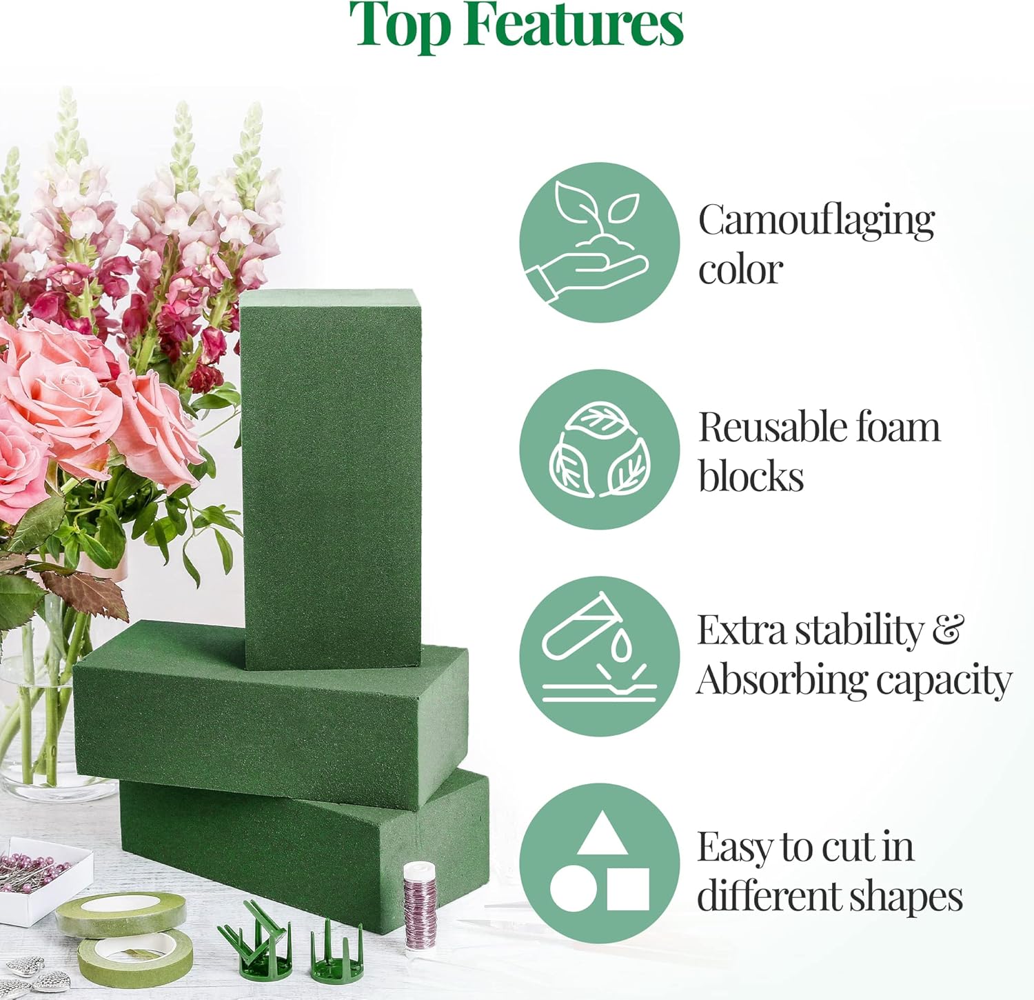 - ๐๐ง๐ก๐๐ง๐๐๐ ๐๐ข๐ญ๐๐ฅ๐ข๐ญ๐ฒ & ๐๐ญ๐๐๐ข๐ฅ๐ข๐ญ๐ฒ: Floral foam is crafted to wick moisture effectively, ensuring your fresh floral arrangements stay vibrant and lively. It provides a stable foundation, enabling you to execute and deliver intricate floral designs for DIY projects, weddings, and gardening.