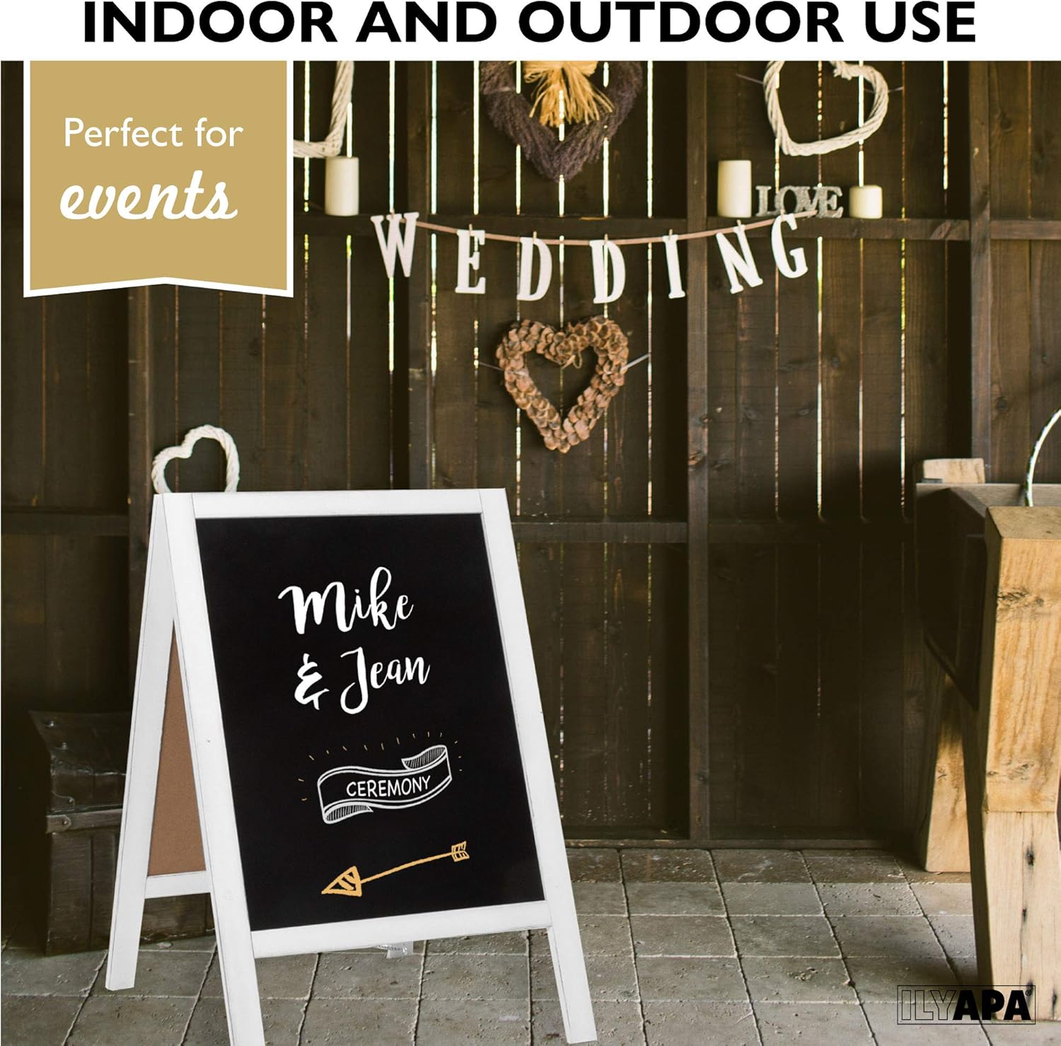 Ilyapa Wooden A-Frame Sign with Eraser & Chalk - 21 x 30 Inches Magnetic Sidewalk Chalkboard – White Menu Display for Restaurant, Business Or Wedding