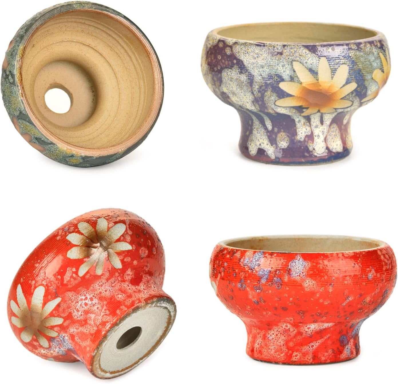 - Handicrafts: This set of beautifully design ceramic succulent pots are handcrafted, beautiful vibrant colors with hand painted flower. The subtle variations in the glaze add character, great artistry and attractive.