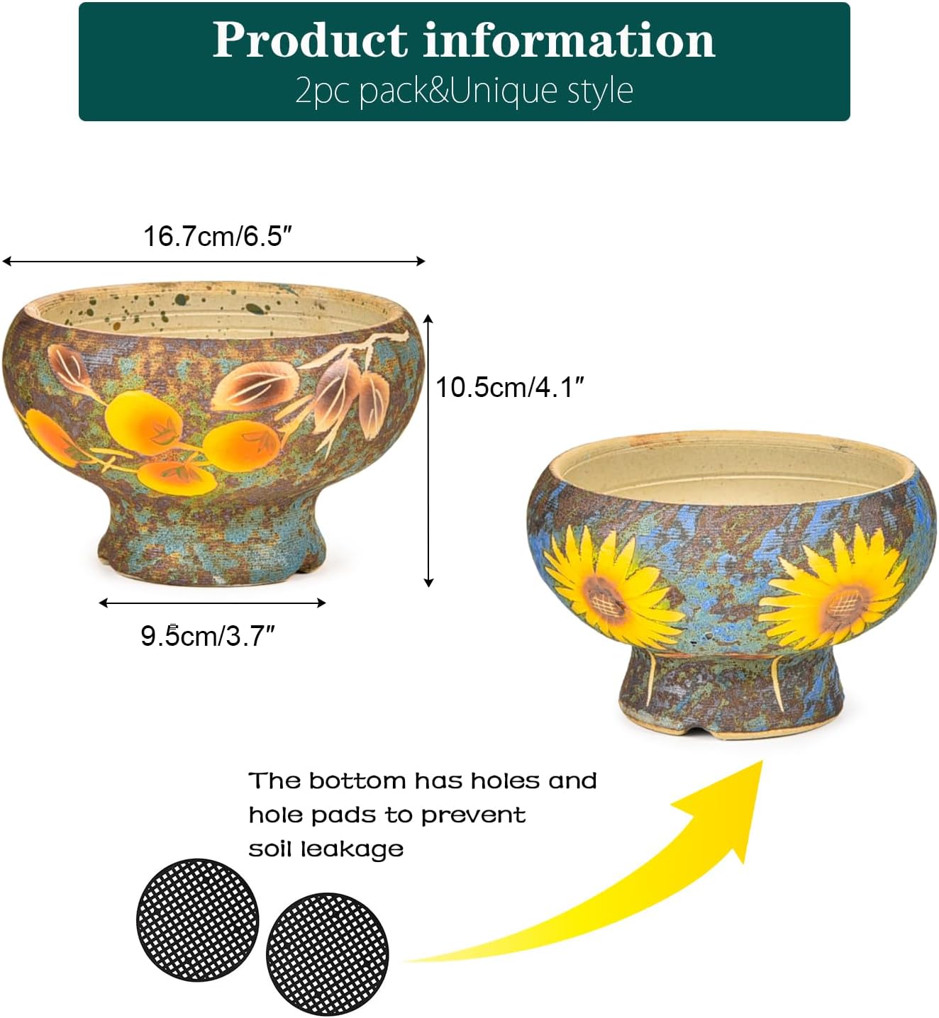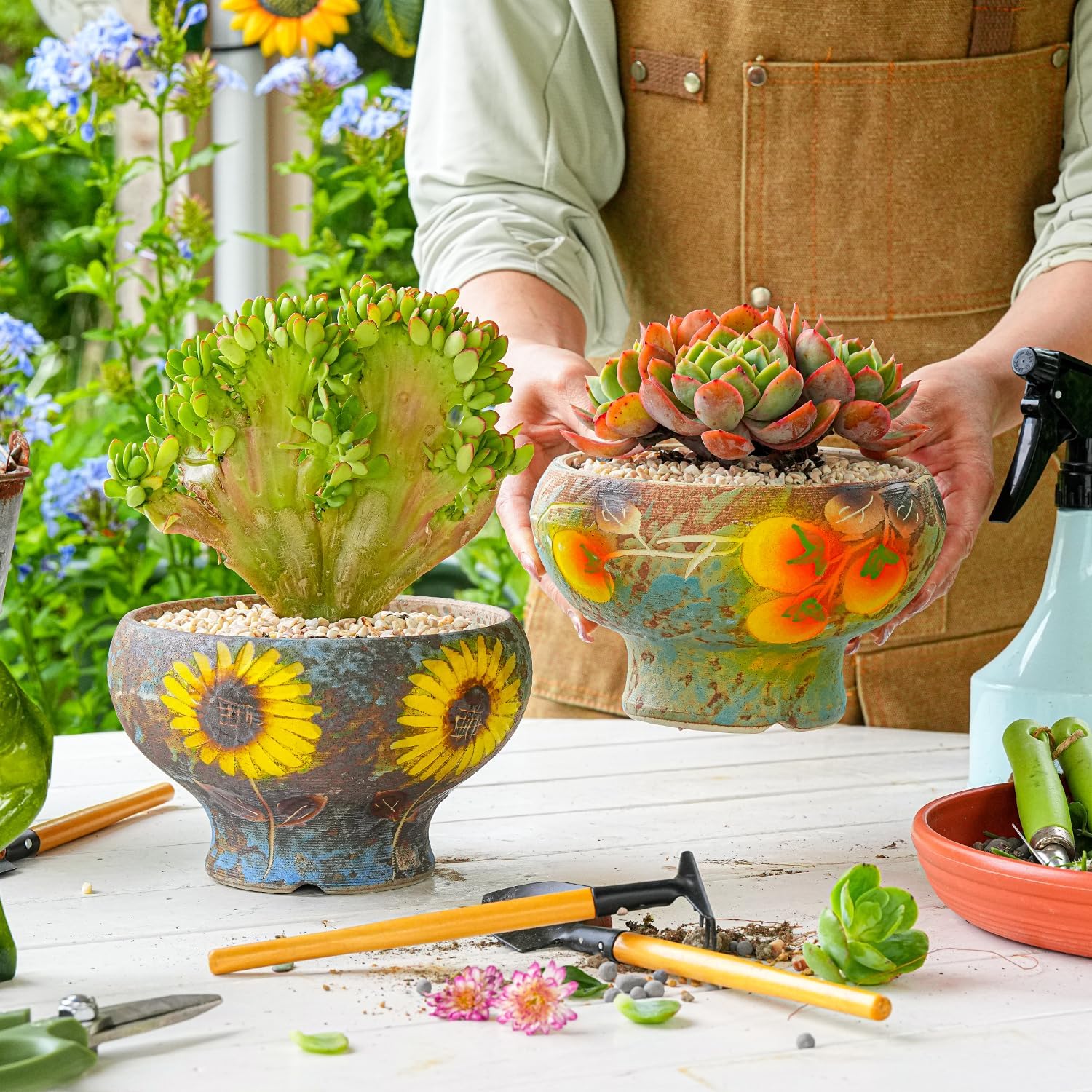 Sungmor Small Succulent Planters Set of 2, Beautiful Hand Crafted Ceramic Plant Pots Cute Cactus Pot, 6.5 Inch Flower Pots for Indoor Plants with Drainage, Desktop Windowsill Home Office Decor Pots