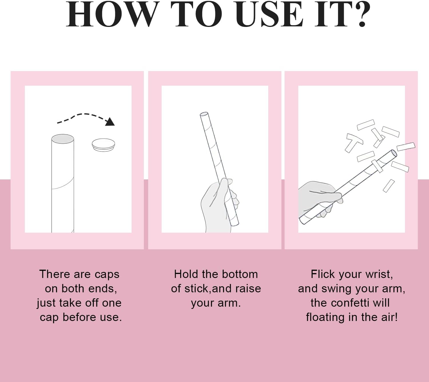 - Easy to Use : Just open the cap, swing your arm and flick the sticks, the paper confetti flick will flutter in the air, can be used at indoor or outdoor parties