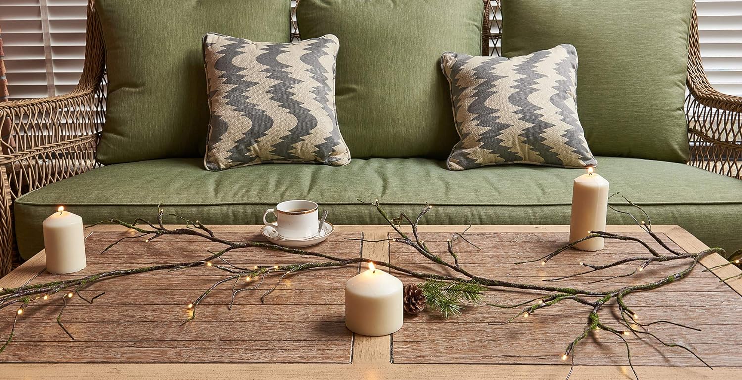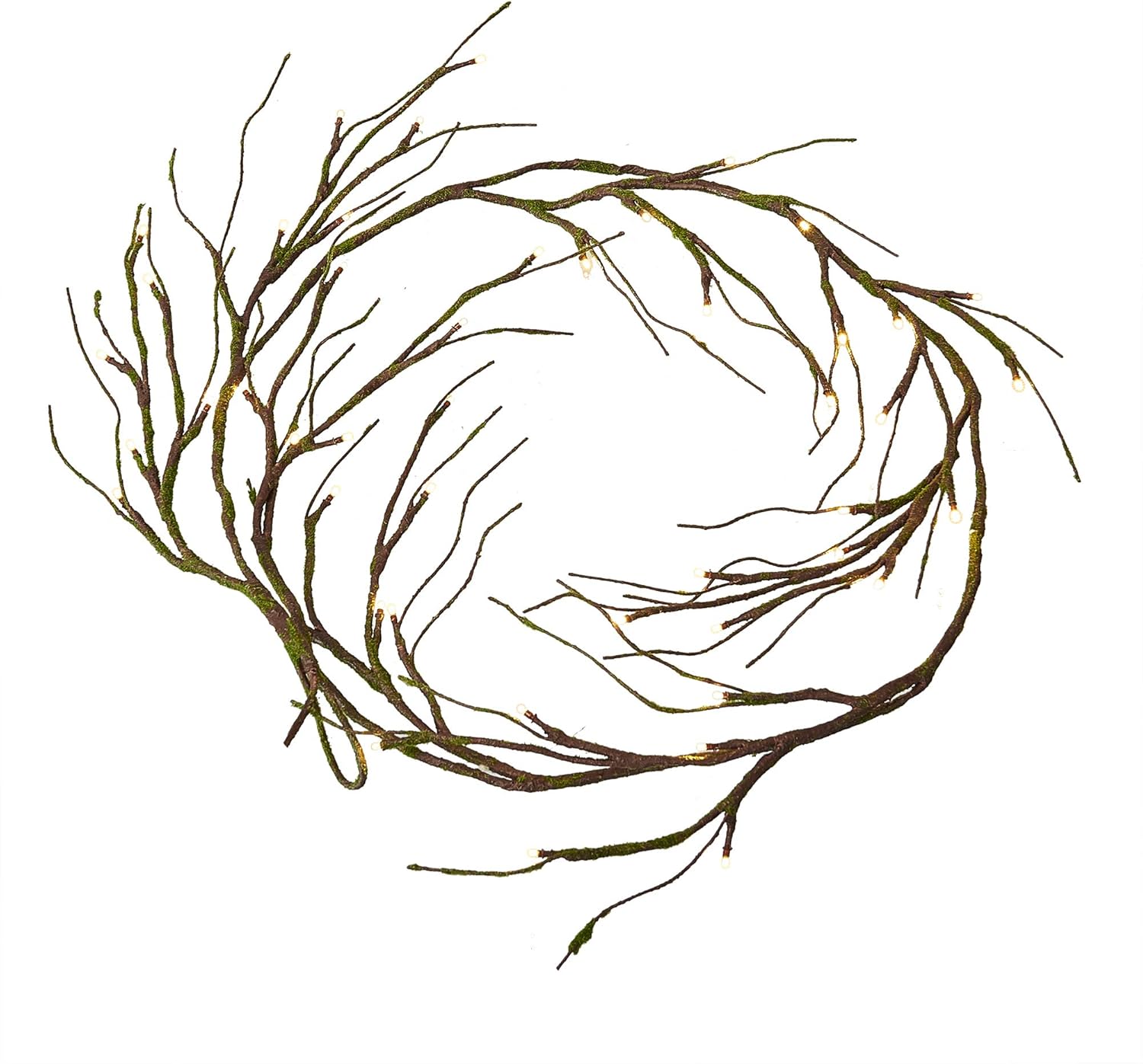 Hairui Mossy Garland Lights 6FT 48 LED Battery Operated Lighted Twig Vine with Timer for Halloween Christmas Party Decoration Indoor Outdoor Use