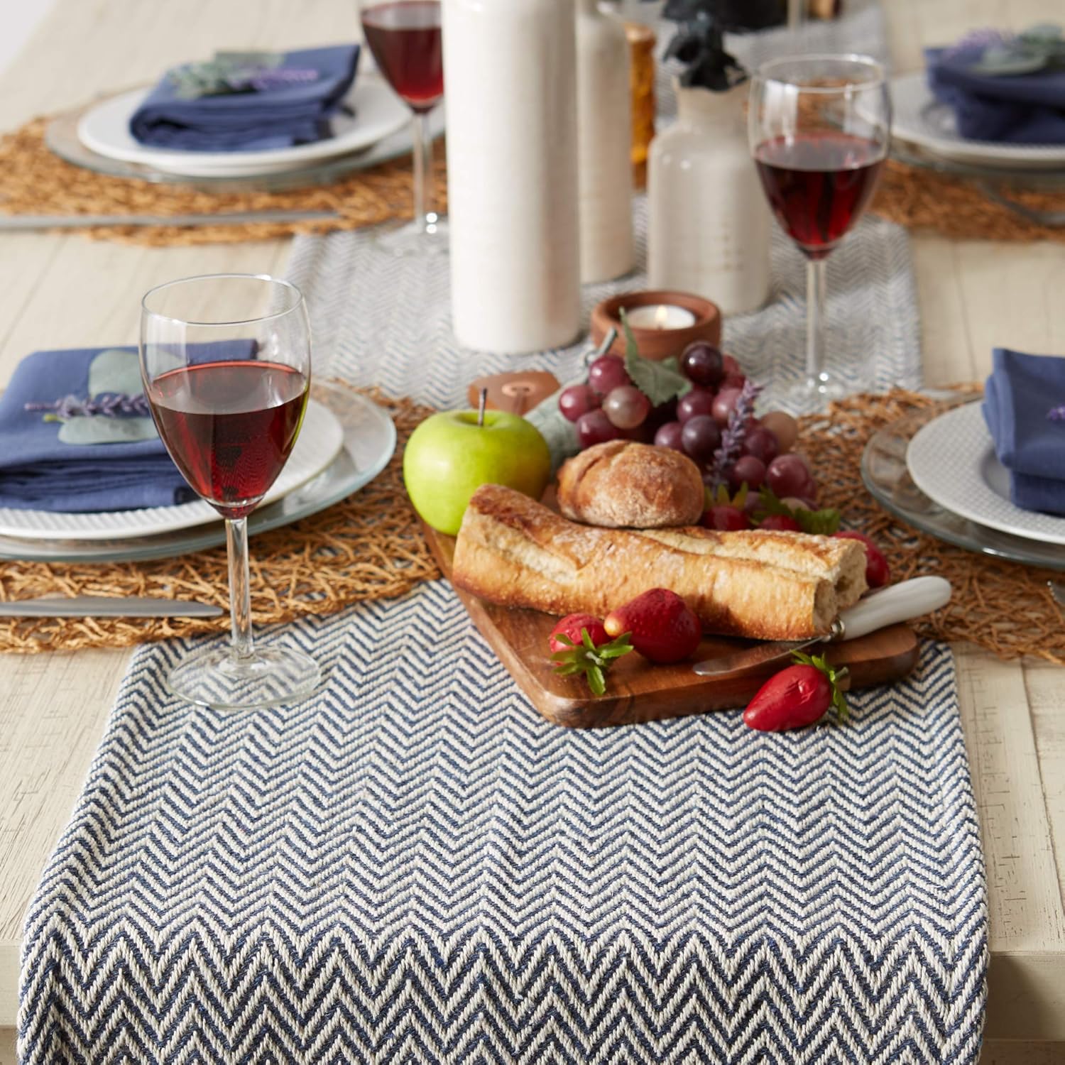 DII Woven Basic Tabletop Collection Chevron Table Runner, 15x72, French Blue