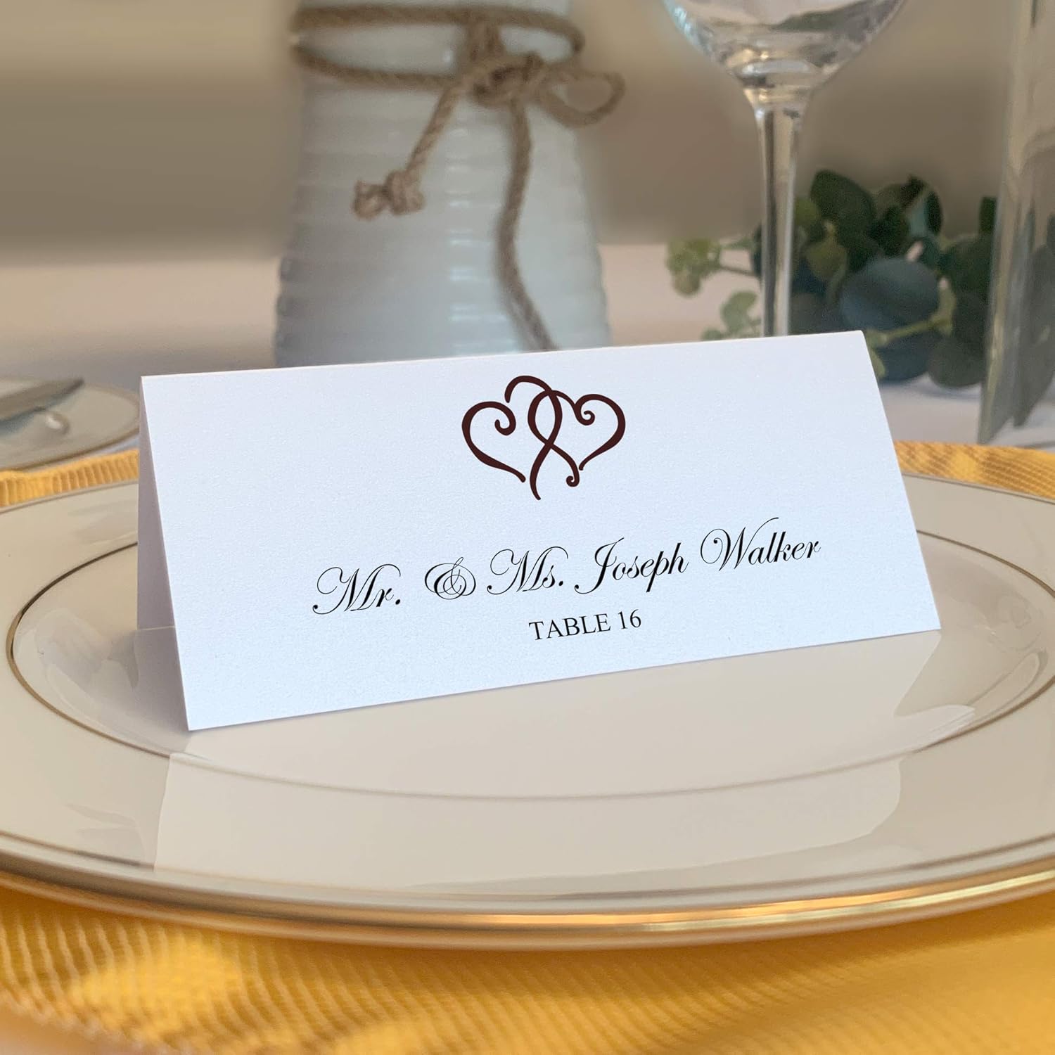 Linked Hearts Place Cards, Chocolate (Choose Color), Set of 150, Pre-cut and Scored - Wedding, Party, Dinner, and Special Events - Made in the USA