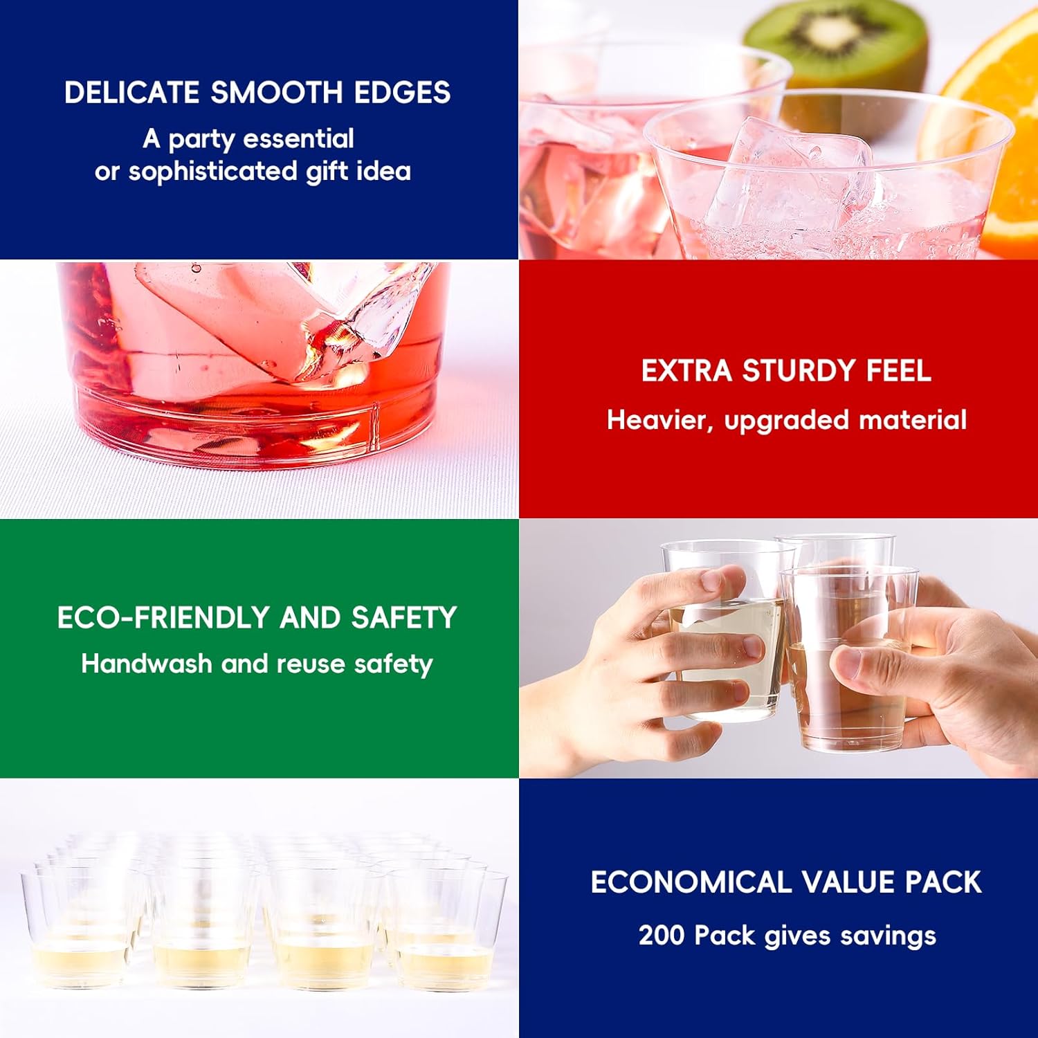 - Wide Occasions: These disposable plastic cups are perfect for wine whiskey cocktails and elite cups. Suitable for weddings, birthdays, parties, family reunions, and other activities. This set contains 200 clear plastic cups for all guests