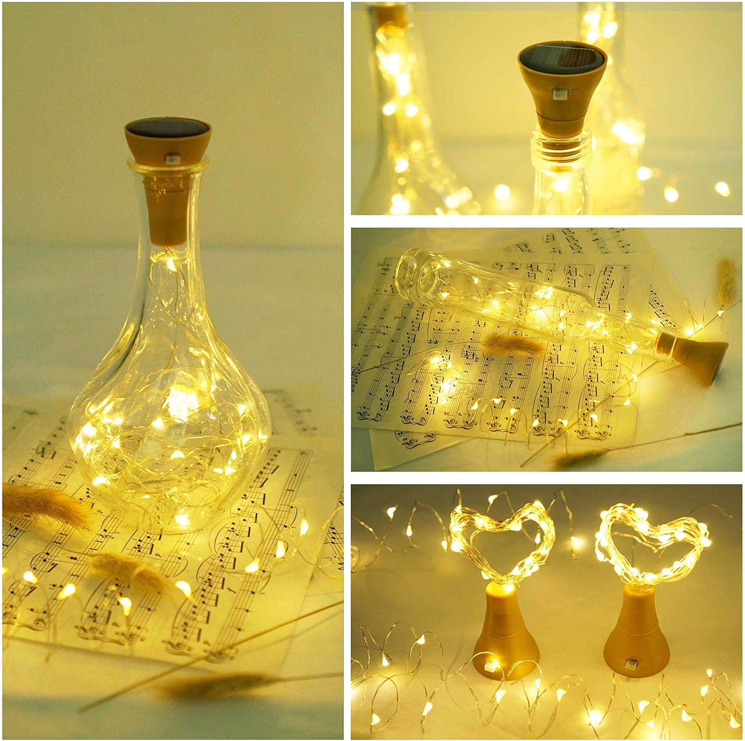 - 100% SOLAR POWERED CORK LIGHTS: The wine lights are energy saving and environmentally friendly. The string light has high brightness, low radiation and no pollution. And charge in the sun 5-6 h will light up 6-8 h.