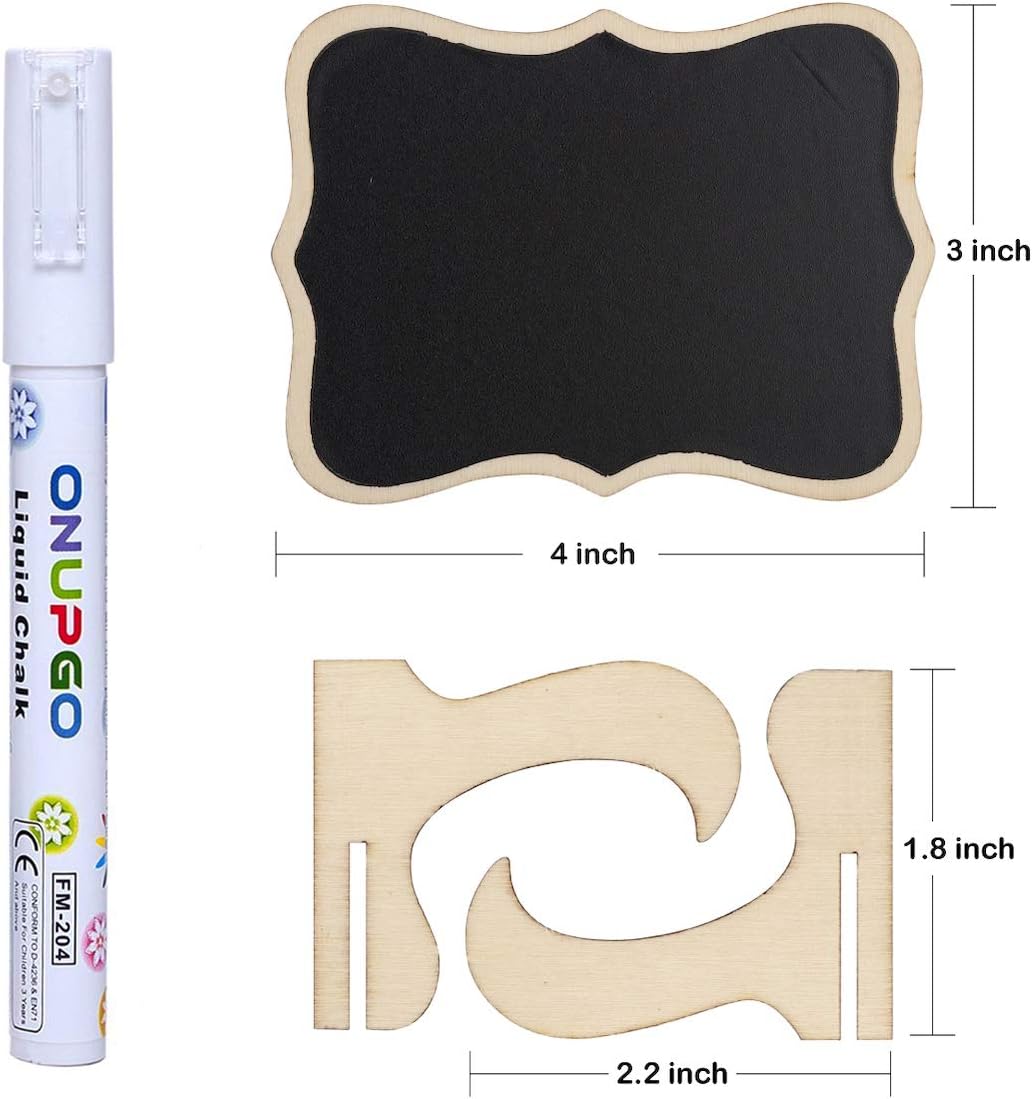 - π STURDY, TOP QUALITY MATERIALS : Made of eco-friendly and high quality wood; The head of chalkboards approx 4"*3", thickness: 0.12" (0.3cm). Chalkboards with removable stand allows it to stand up well on a table, mini chalkboard cards packaged come individually wrapped in plastic which prevented scratching and damage, then all box package, easy to store or carry.