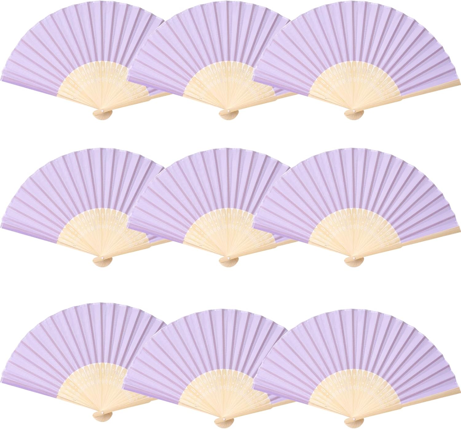 24pcs Imitated Silk Hand Fan Imitated Silk Fabric Bamboo Handheld Folded Fan Bridal Dancing Props Church Wedding Party Favors with Organza Bags (Light Purple)