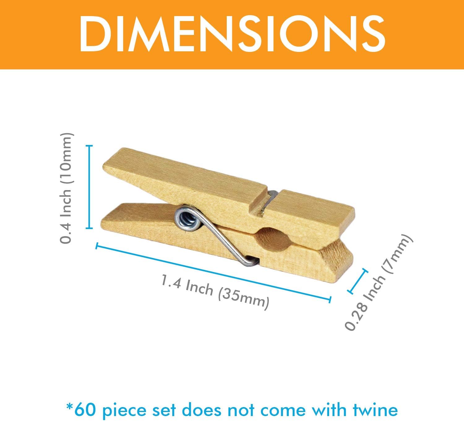 - Each set comes with 60pcs of natural color craft clothespins.