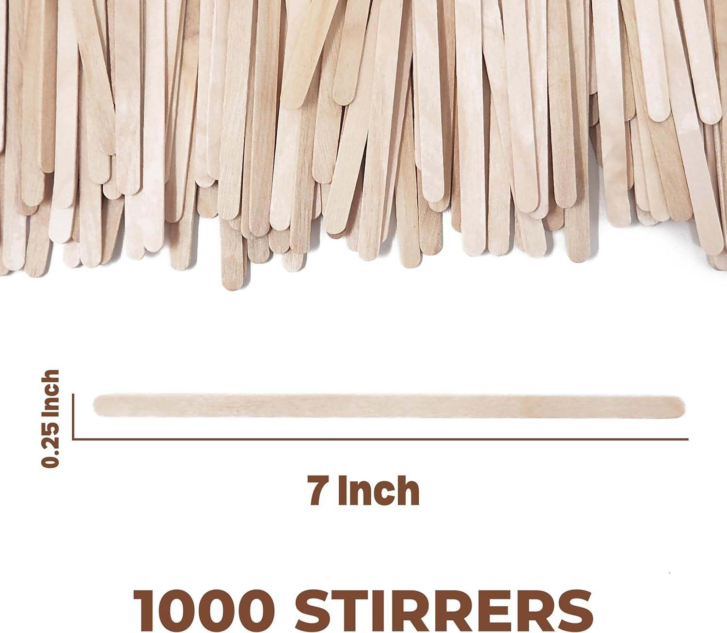 - Smooth Wooden Stir. These coffee stir sticks boast smooth surfaces and are free from splinters. Each stirrer measures 7 inches in length and ΒΌ inch in width, featuring rounded ends for safe and comfortable stirring. Each box contains 1000 stirrers, providing ample supply for all your coffee needs. The convenient storage box ensures easy access and organization, making it ideal for busy office breakrooms or home coffee stations.