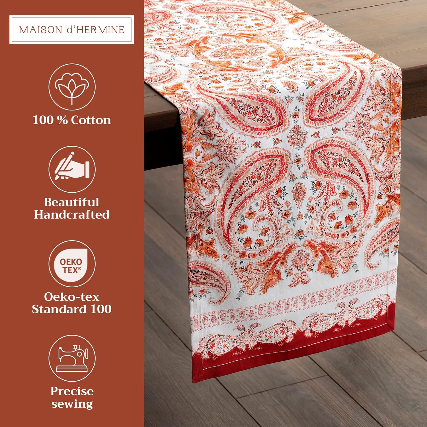 Maison d' Hermine Table Runner 100% Cotton Single Layer Table Runners 108 inches Long for Thanksgiving Christmas Decorations Home Kitchen Dining Party Wedding (Orient, 14.5" x 108")