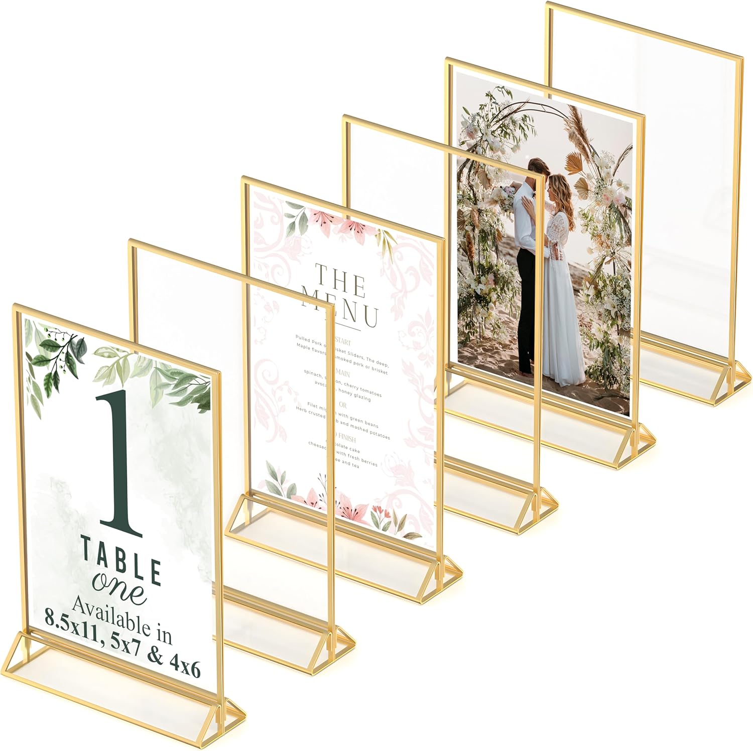 Gold Picture Frames Double-Sided, 6-Pack 8.5x11 Acrylic Table Number Holders, Clear Easel Stands for Signs, Gold Frames for Wedding Table Numbers, Menu Holders, and Photo Displays for Events and Décor