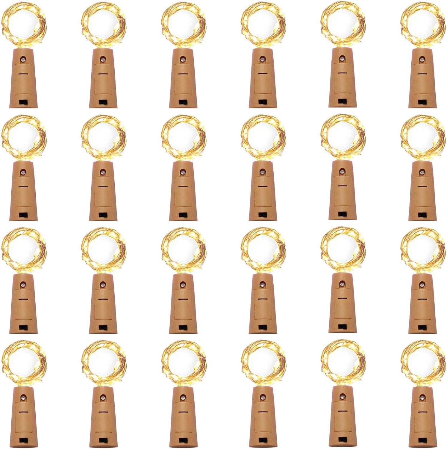 24 Pack 20 LED Wine Bottle Cork Lights, Fairy Mini String Lights Copper Wire, Battery Operated Starry Lights for DIY, Christmas, Halloween, Wedding, Party, Indoor&Outdoor (24 Pack, Warm White)
