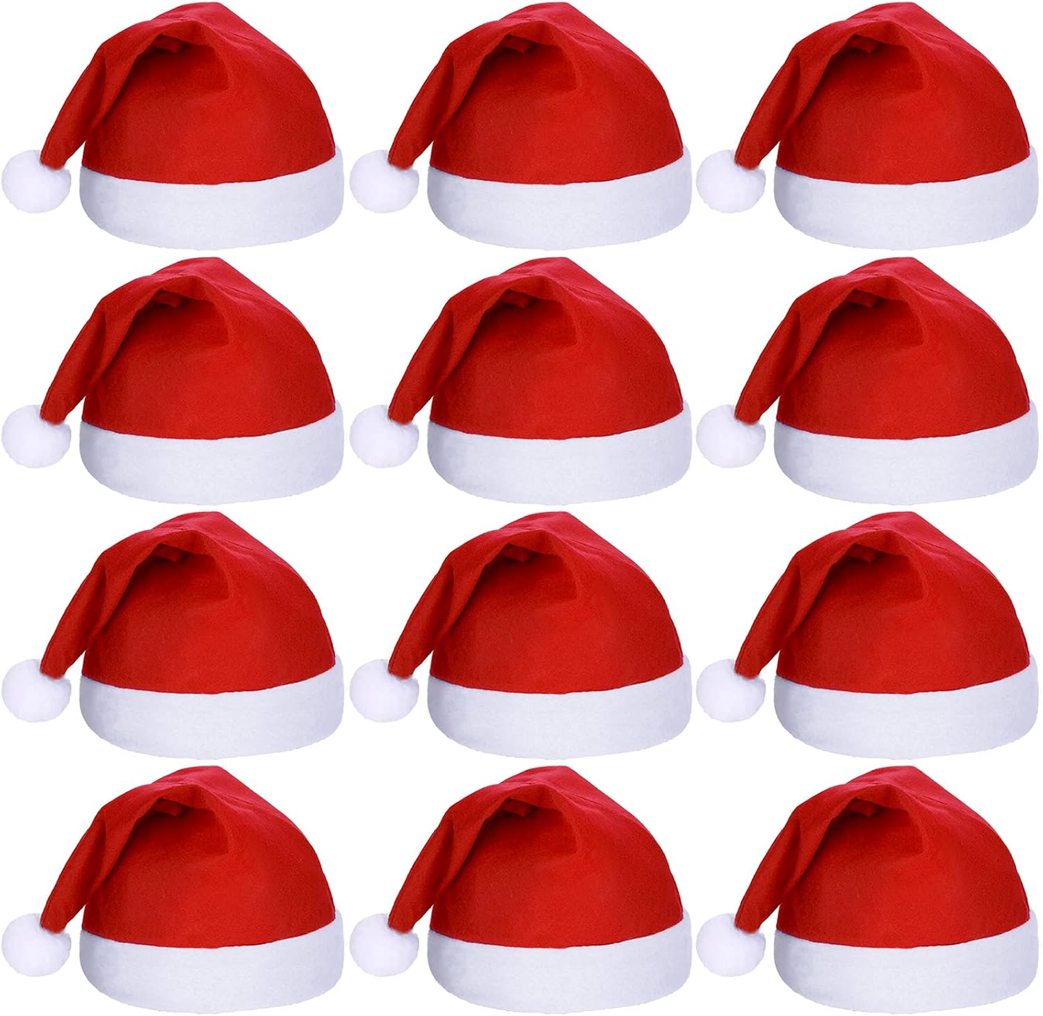 SATINIOR 12 Pieces Santa Hats Christmas Non Woven Fabric Hat for Holidays Xmas Party Supplies