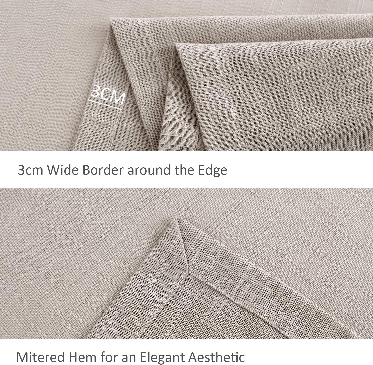- Our table cloths are made of high-quality polyester faux linen yarn, with slubby texture. It is more durable than real linen yet soft and supple; while protecting table surface, our tablecloth also adds a sense of understated luxury to your dining scene.
