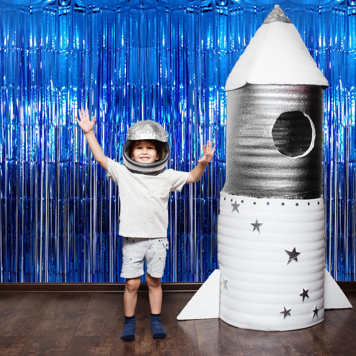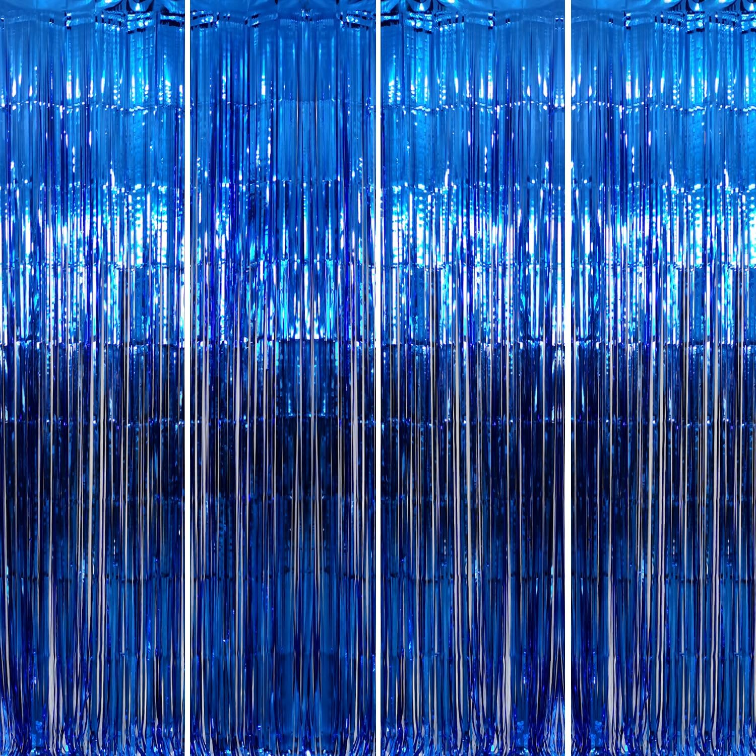 - Package Includes:4 pack navy blue foil fringe curtain,3.2 ft x9.8 ft each,suitable for hanging on a door or coverage a wall fully