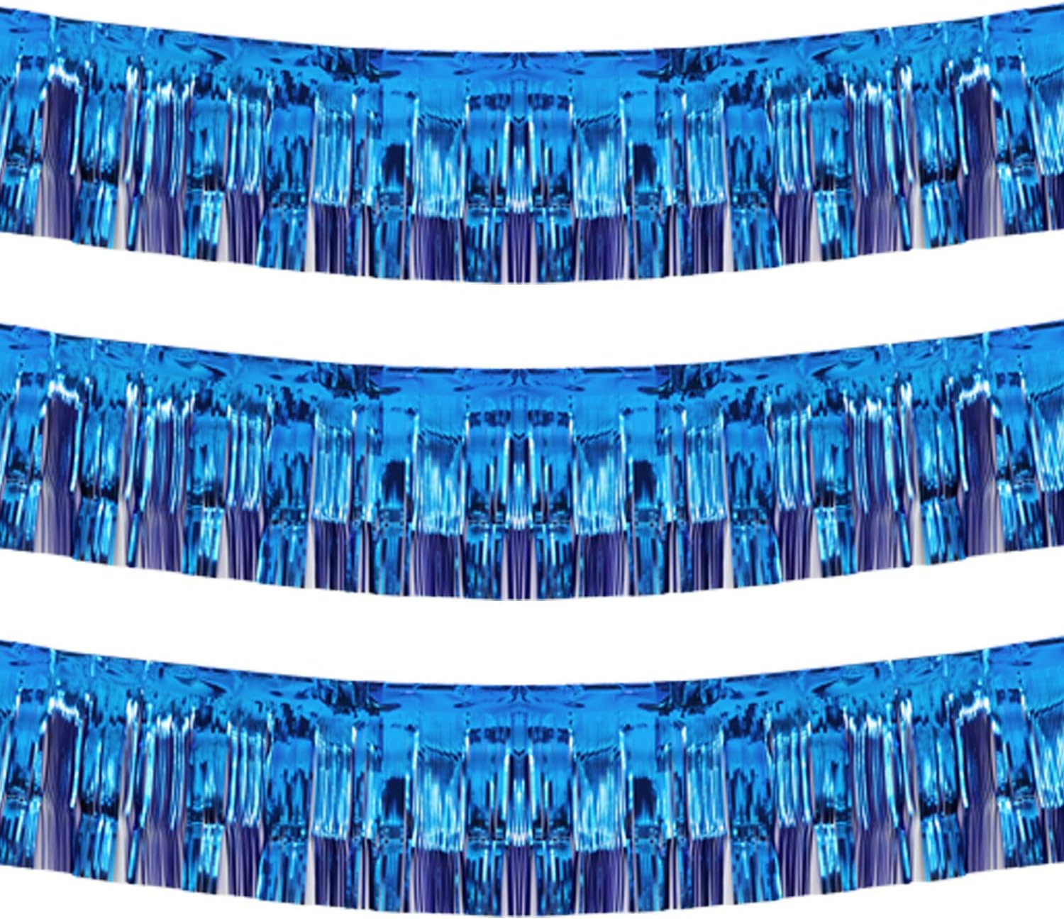Thick 10 Feet by 15 Inch Royal Blue Foil Fringe Garland - Pack of 3 | Shiny Metallic Tinsel Banner for Parade Floats, Bridal Shower, Wedding, Birthday, Christmas | Wall Hanging Drapes (3)