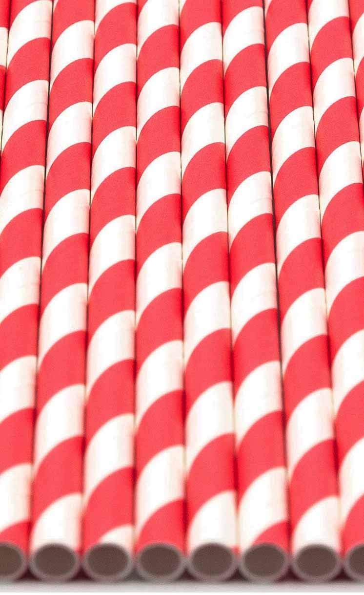 - Pack of 150 Red Swirls paper straws that are 7.75” long and have a diameter of 0.25”. Made with 4-ply paper which translates into thicker and more resilient straws that won’t wilt or change shape in both hot and cold drinks.