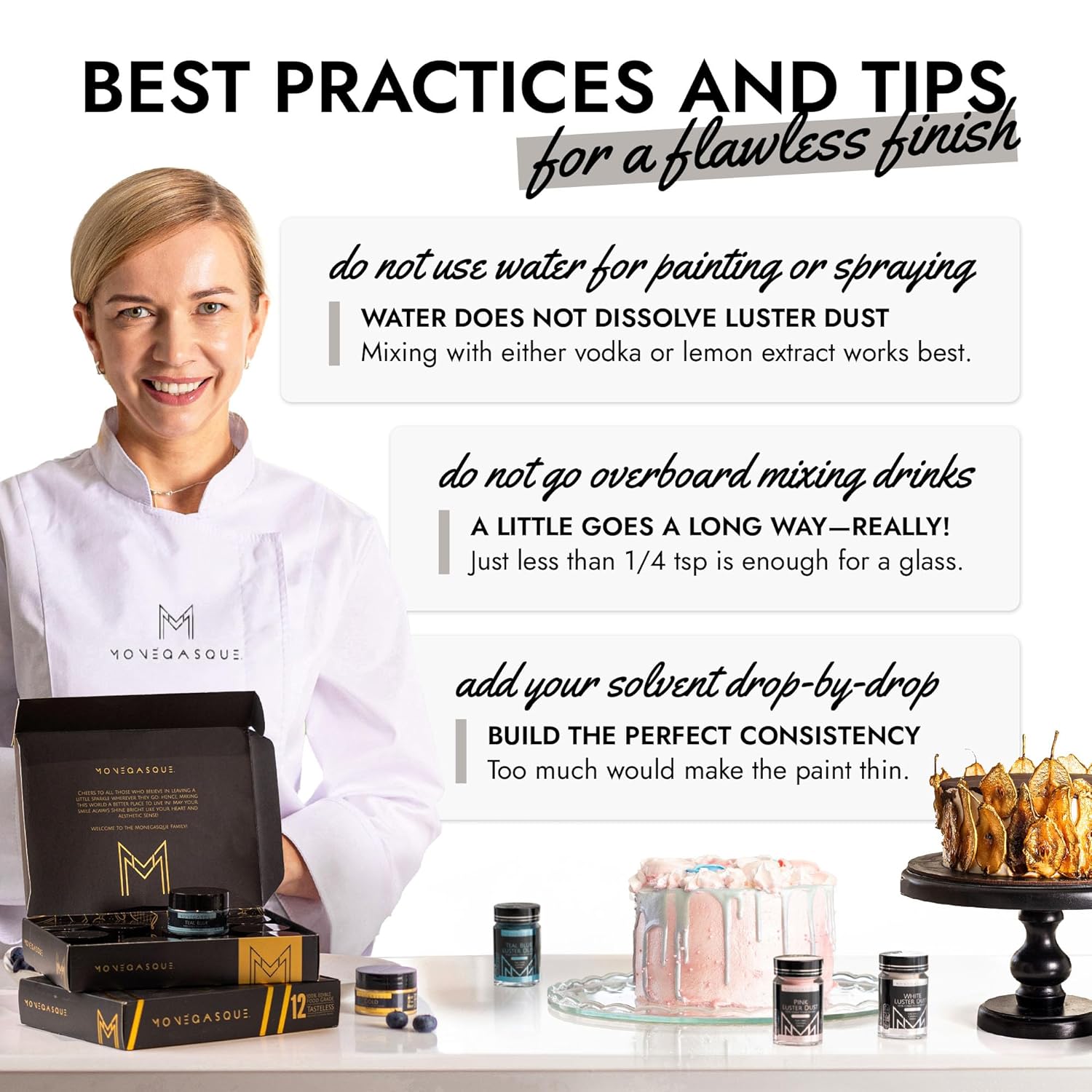 - EASY TO USE: Our silver luster dust is incredibly versatile. Apply with a wet brush, airbrush, or dry brush, and even mix into beverages. Achieve professional-looking results effortlessly at home, whether decorating halloween cakes or adding shimmer to cocktails.