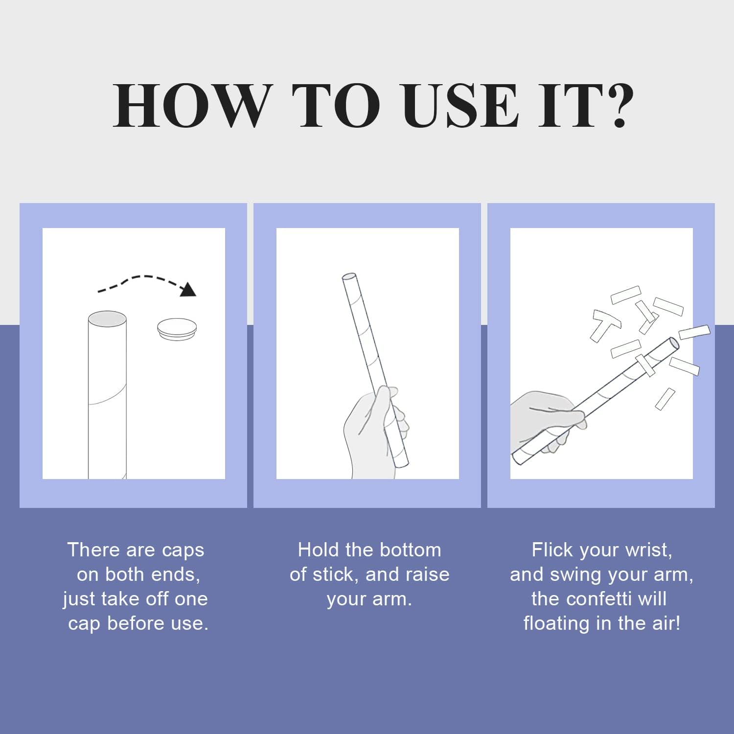 - Easy to Use & Safe : Just open the cap, swing your arm and flick the sticks, the paper confetti will flutter in the air, can be used indoor or outdoor party. It's great for party decoration
