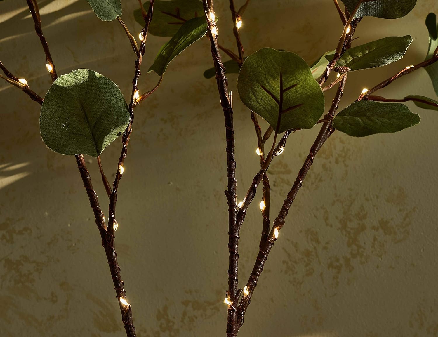 - EXQUISITE APPEARANCE: This lighted stem is covered with full and lifelike eucalyptus leaves, itβs a perfectly vivid artificial branch light decoration as a centerpiece decor or with flower arrangement