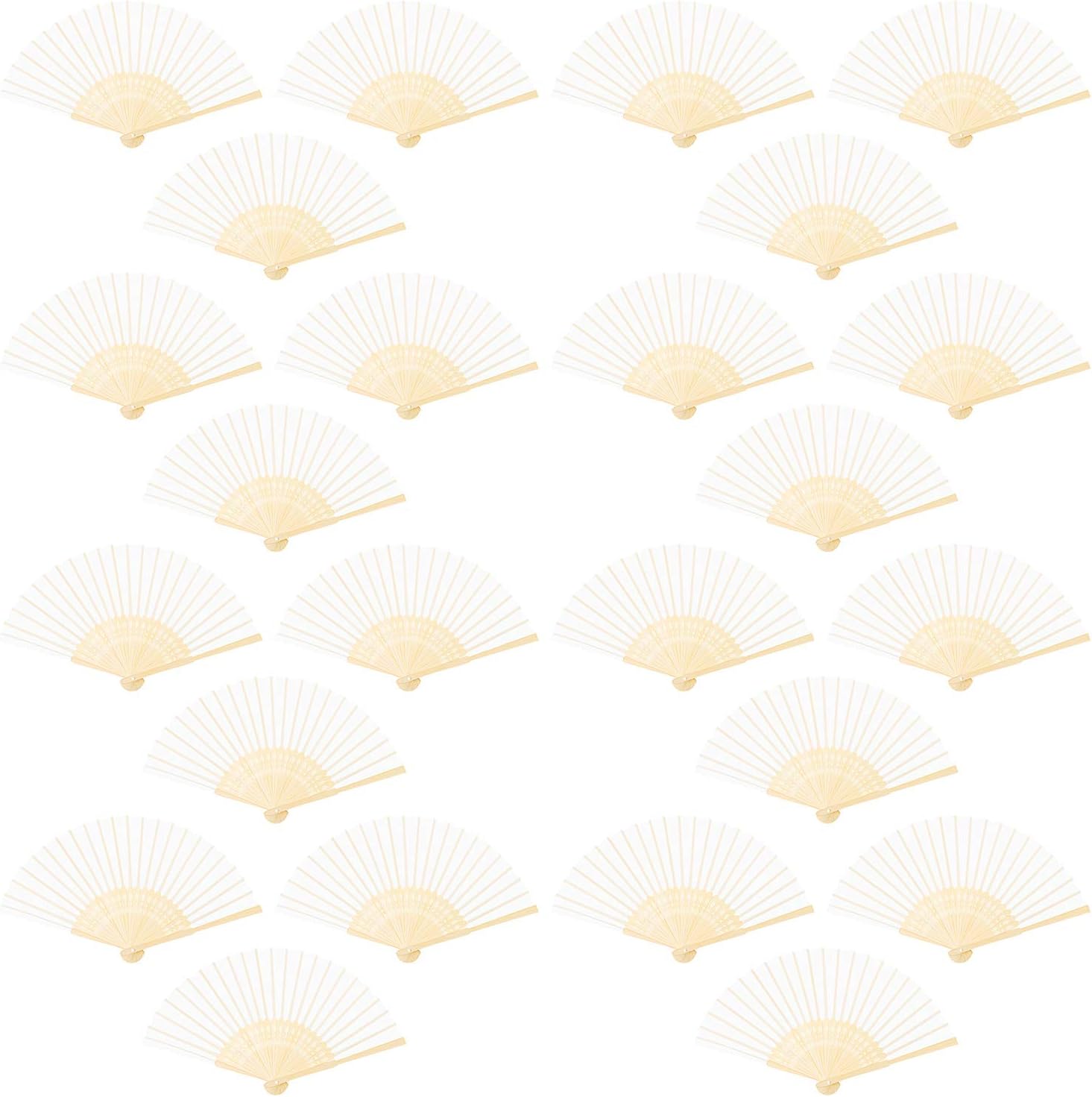 URATOT 24 Pieces White Folding Fans Silk Bamboo Folding Fans Handheld Fan for Wedding, Party Decoration